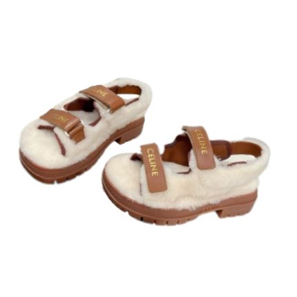 Celine Leo 女式毛皮光滑黑色 Scrap 凉鞋