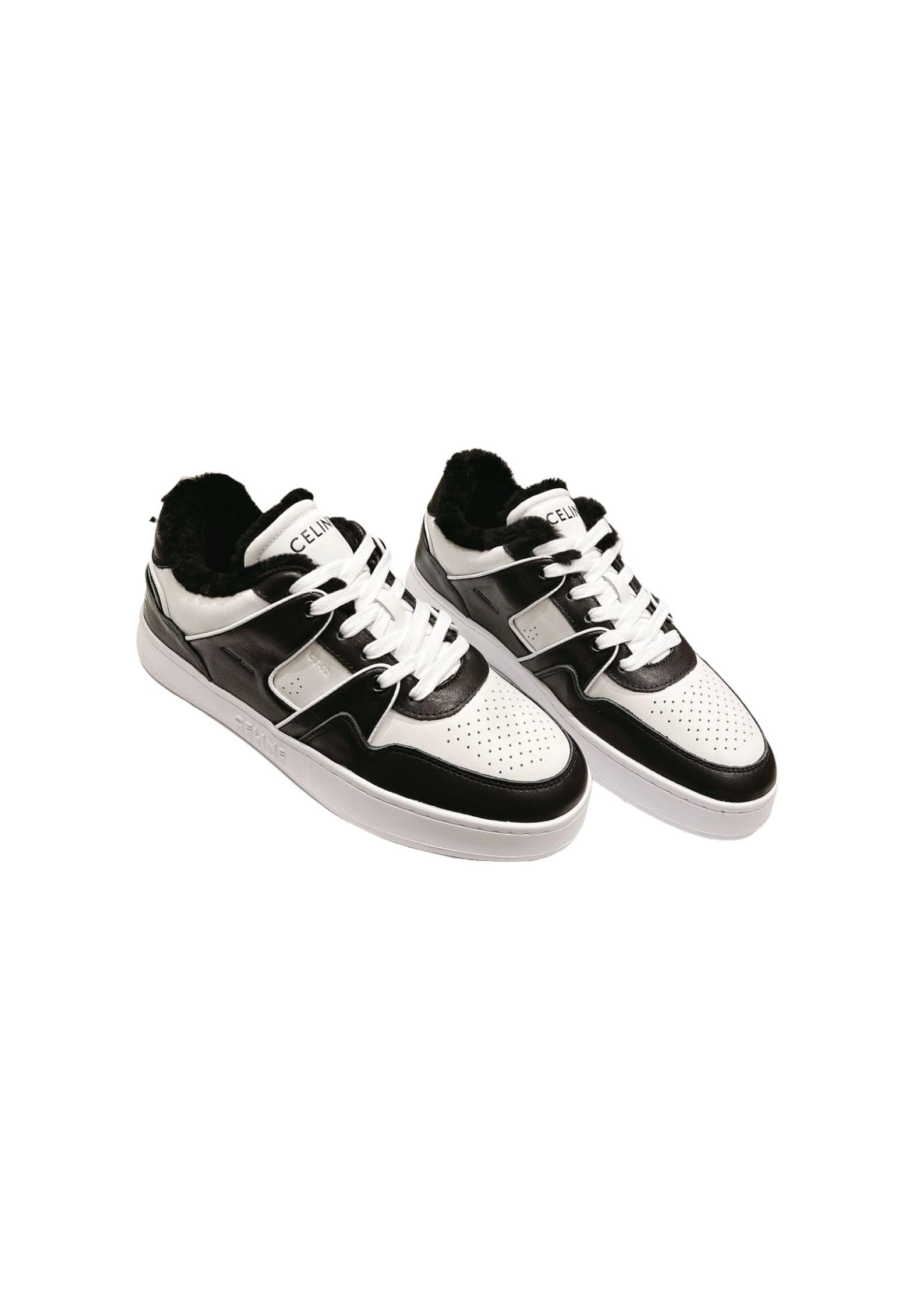 Celine Trainer 黑色毛皮低系带运动鞋