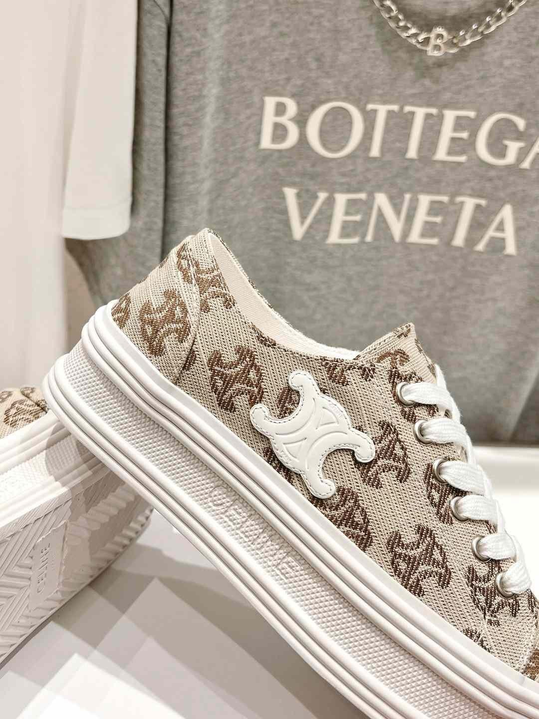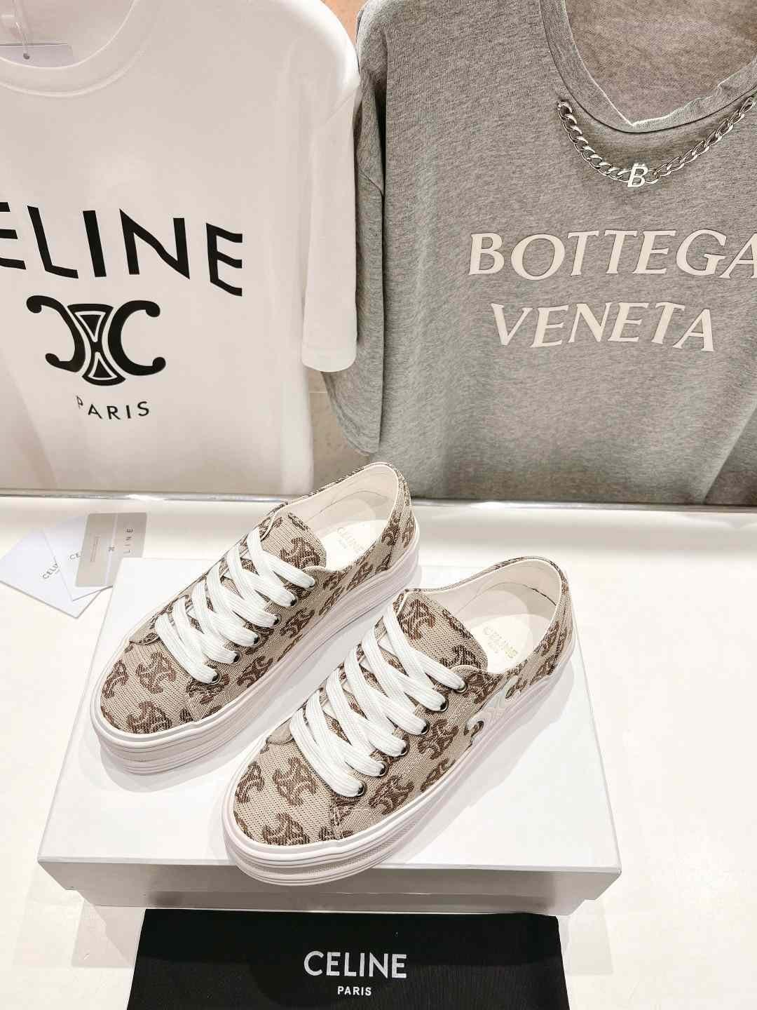 CELINE Triomphe 女式米色帆布运动鞋