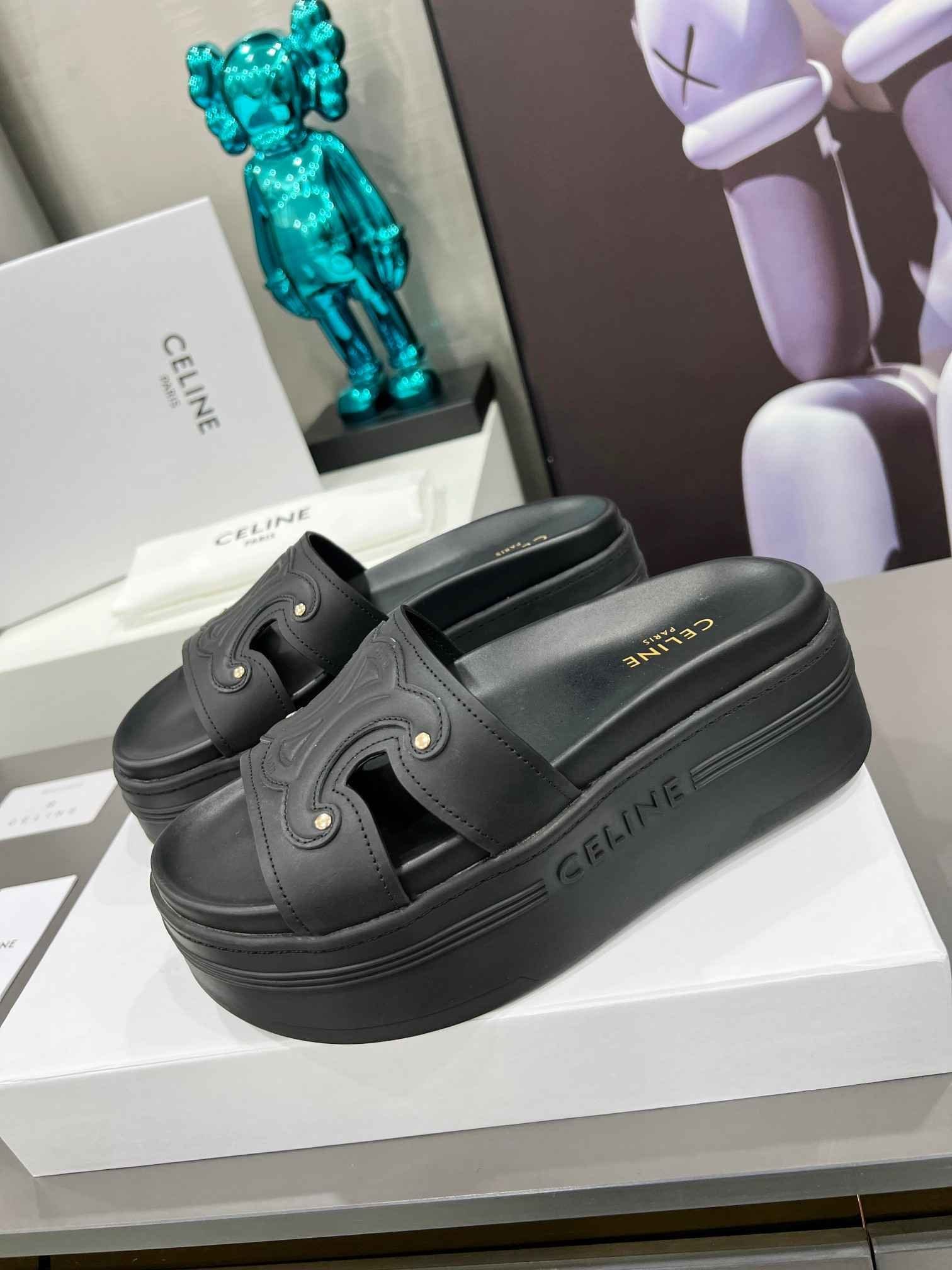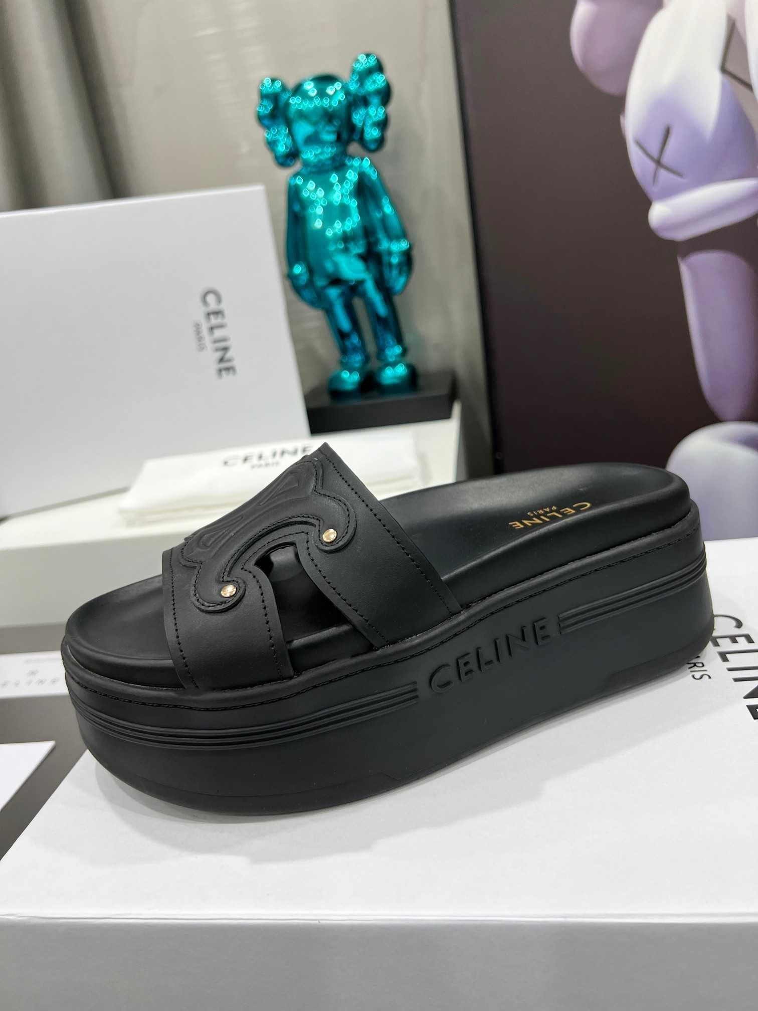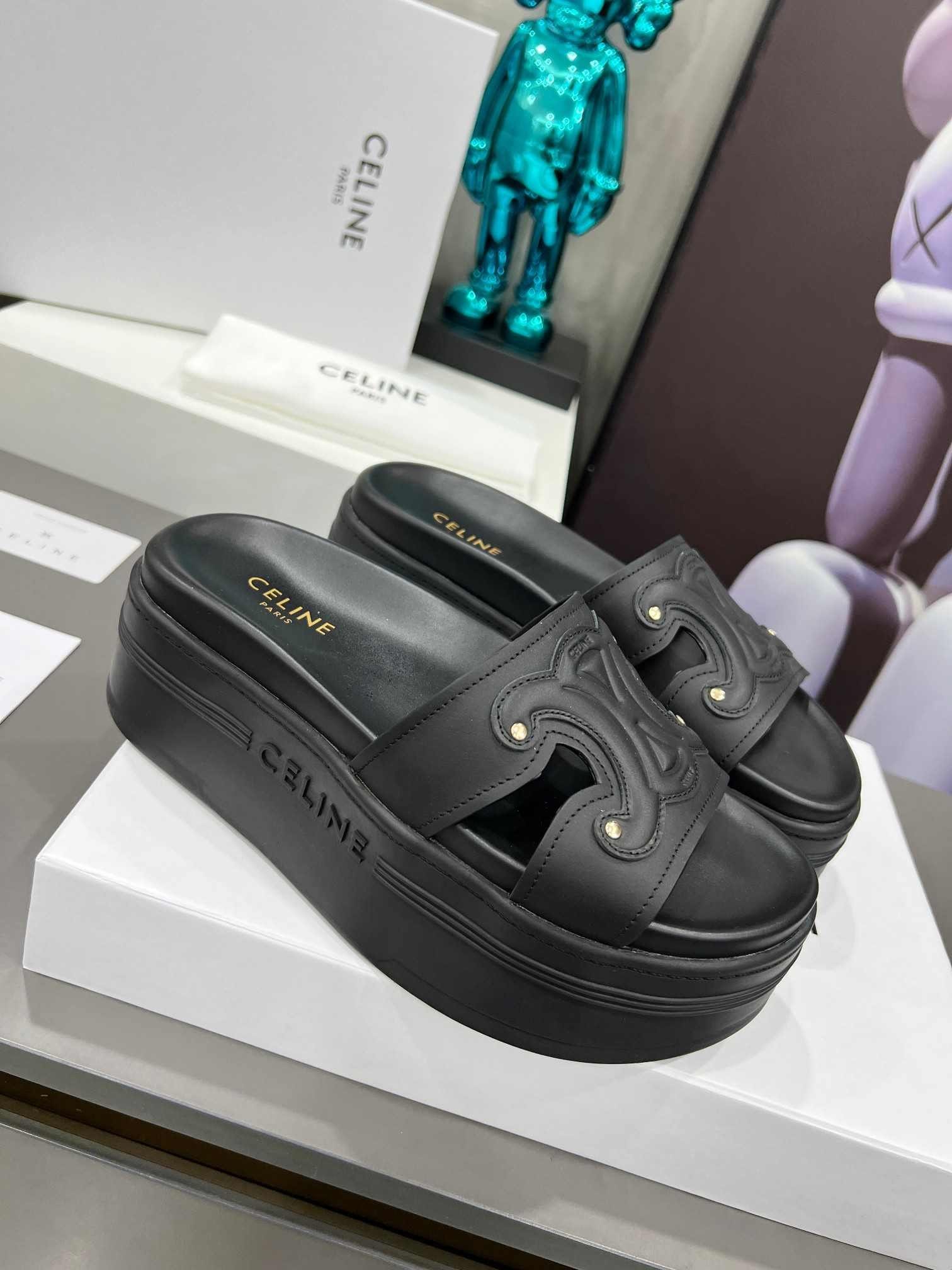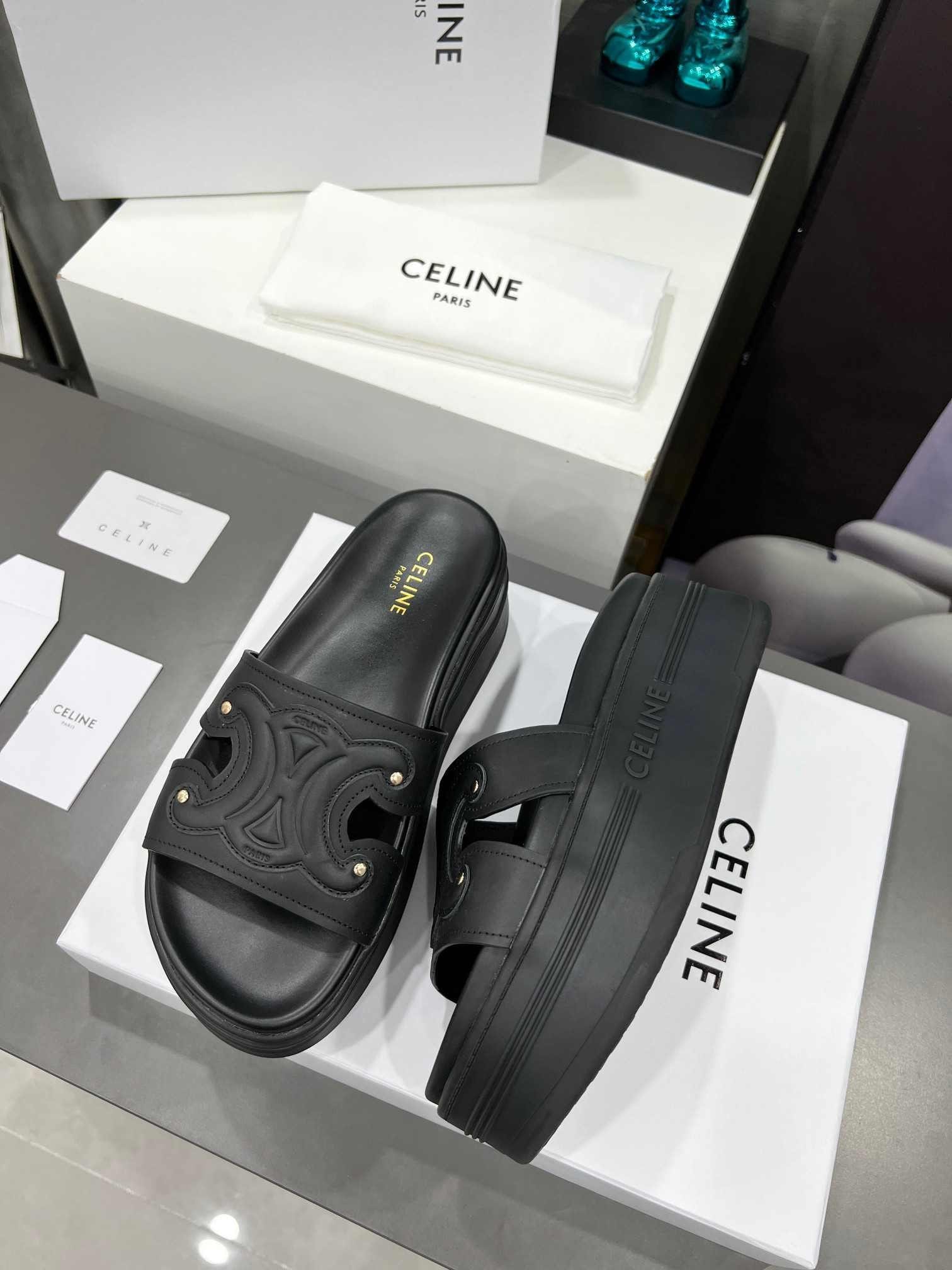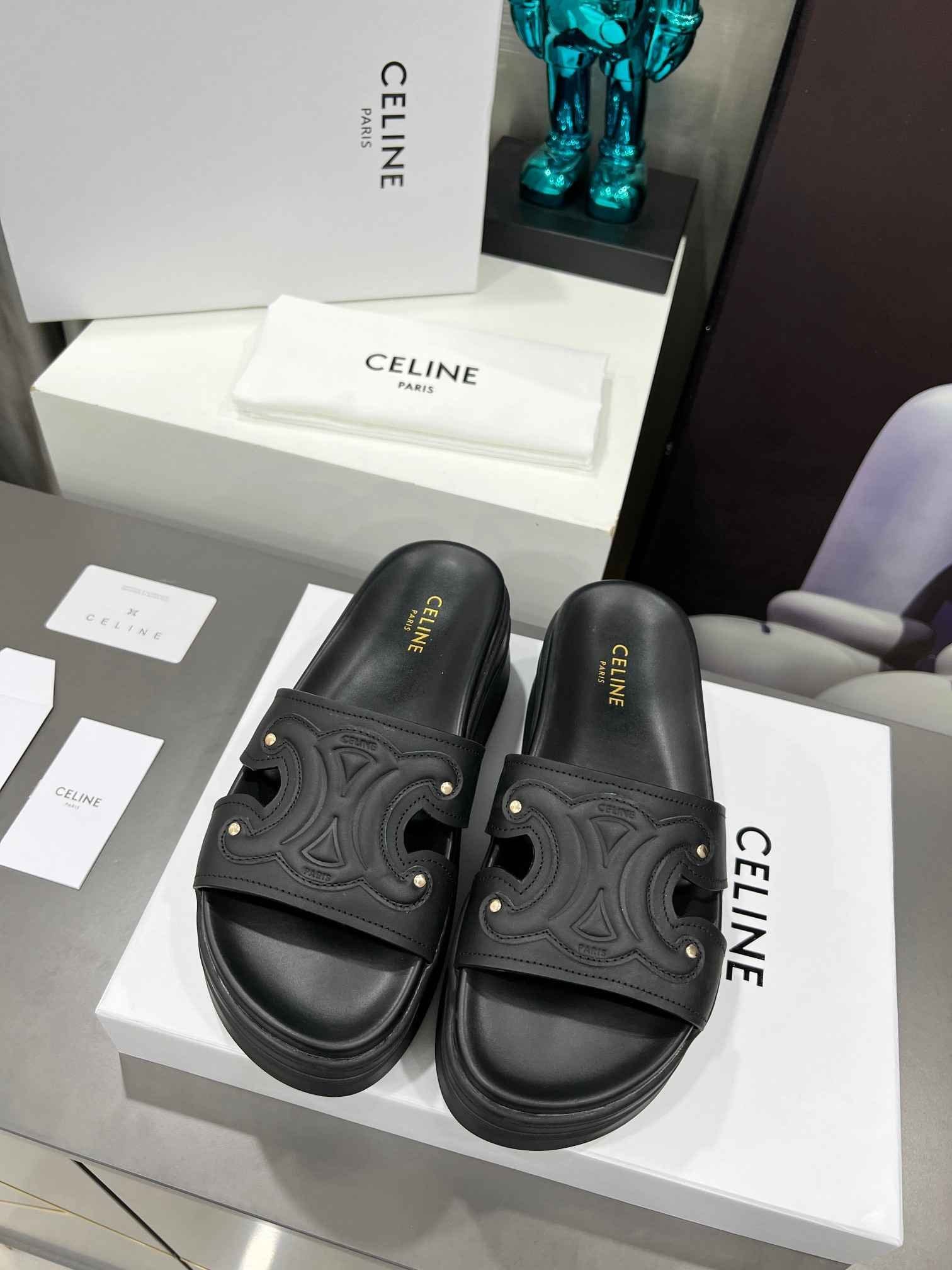 Celine Triomphe 女式黑色拖鞋