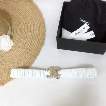 Chanel 双 C 扣腰带黑色带金色金属和水钻五金女士腰带