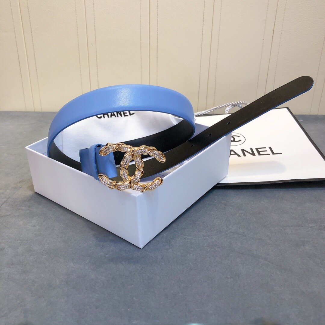 Chanel 腰带,带双 C 扣蓝色女士腰带