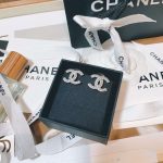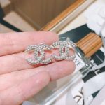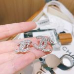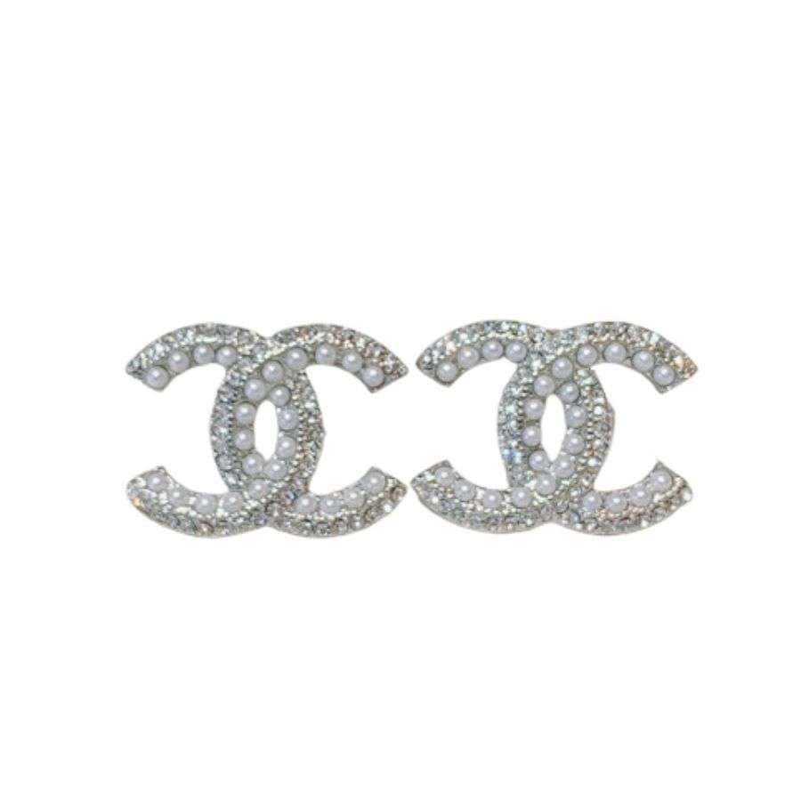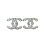 香奈儿水钻双 C 耳环银色