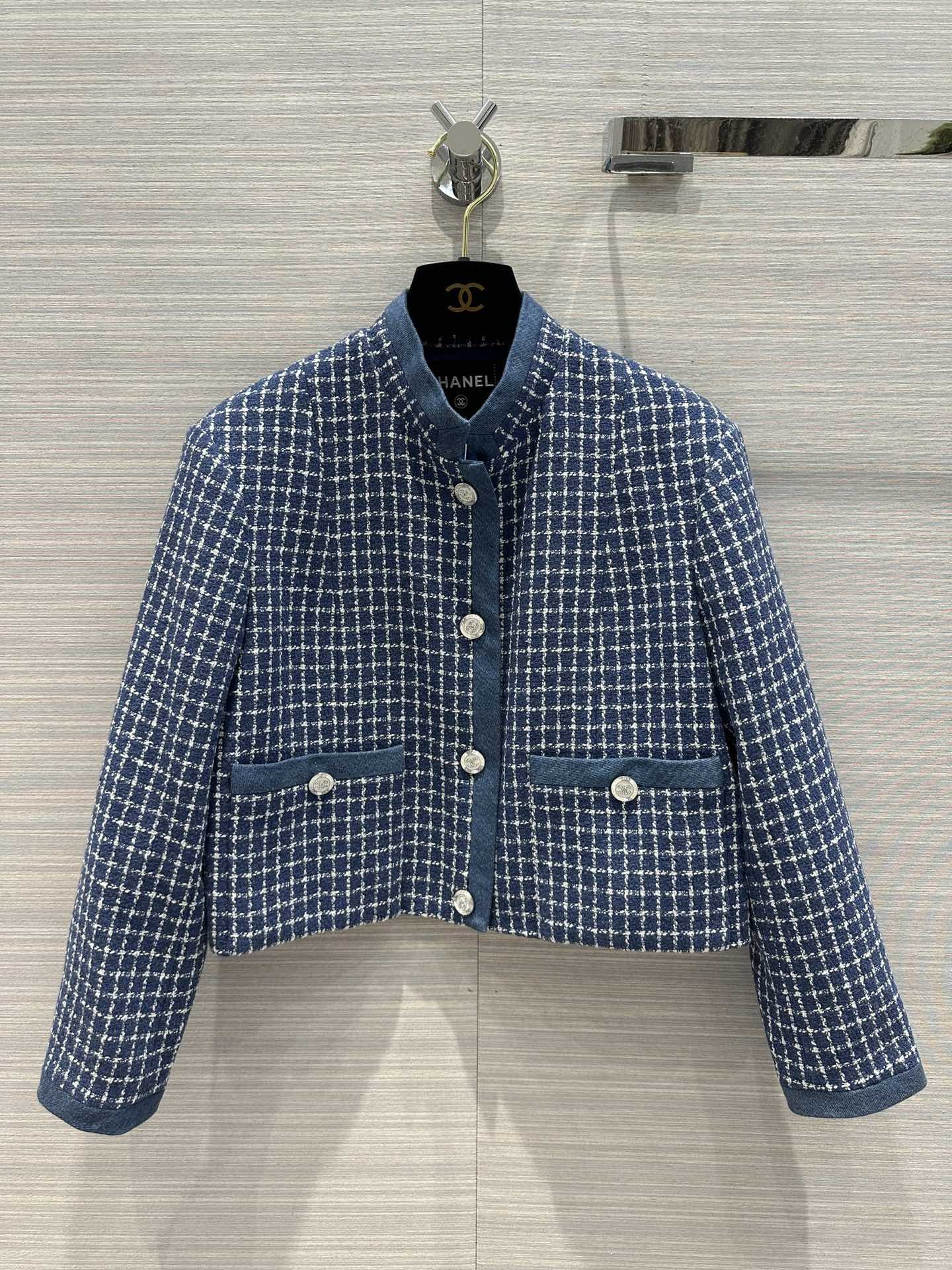 Chanel 短圆领夹克蓝色
