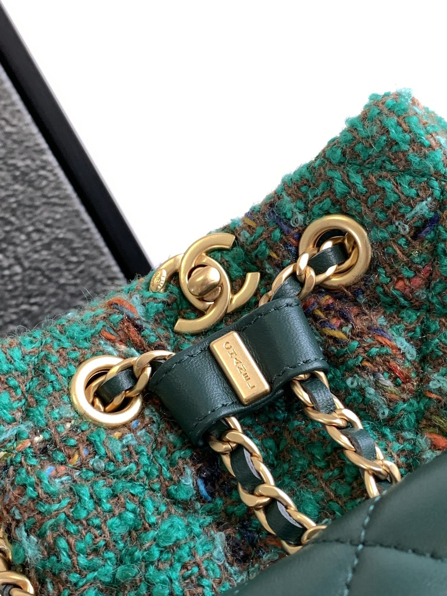 Chanel 花呢背包绿色/橙色