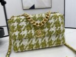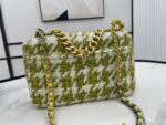 香奈儿 19 大号手提包金色五金件绿色女士、女士手提包、单肩包 11.8 英寸/30 厘米