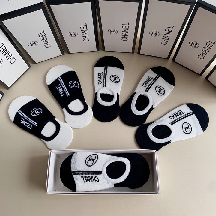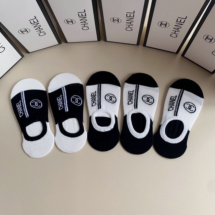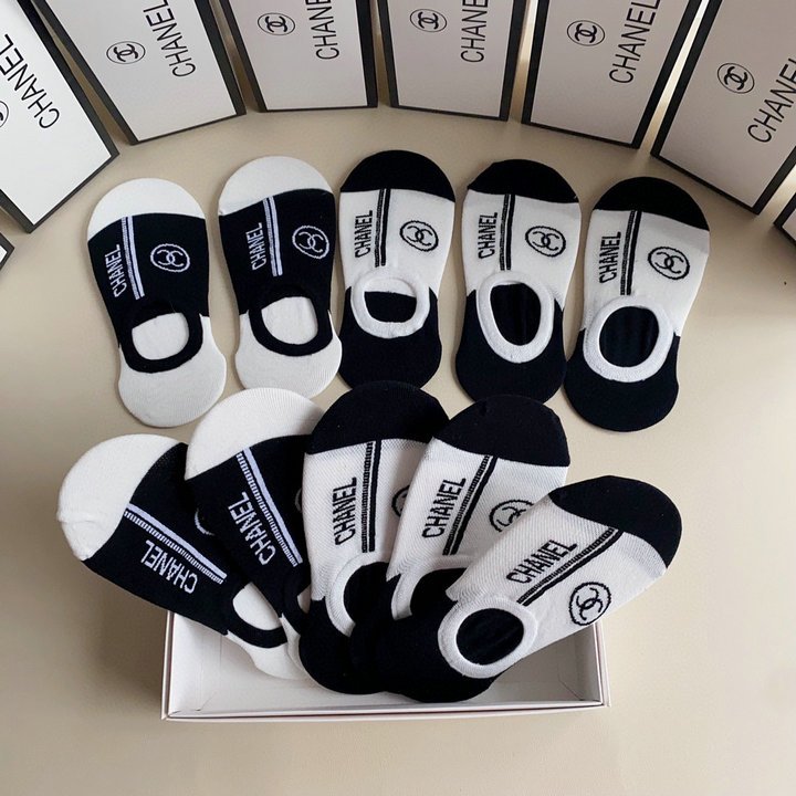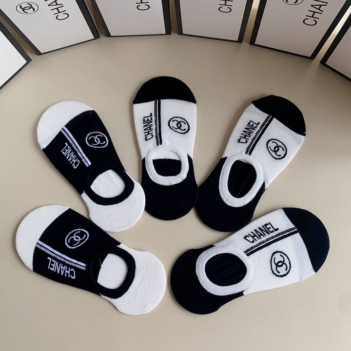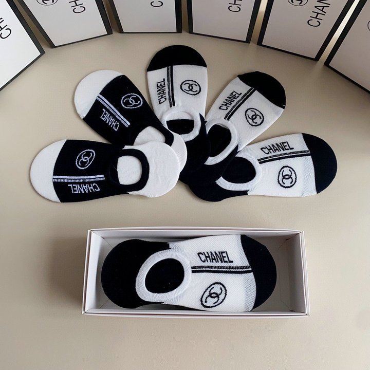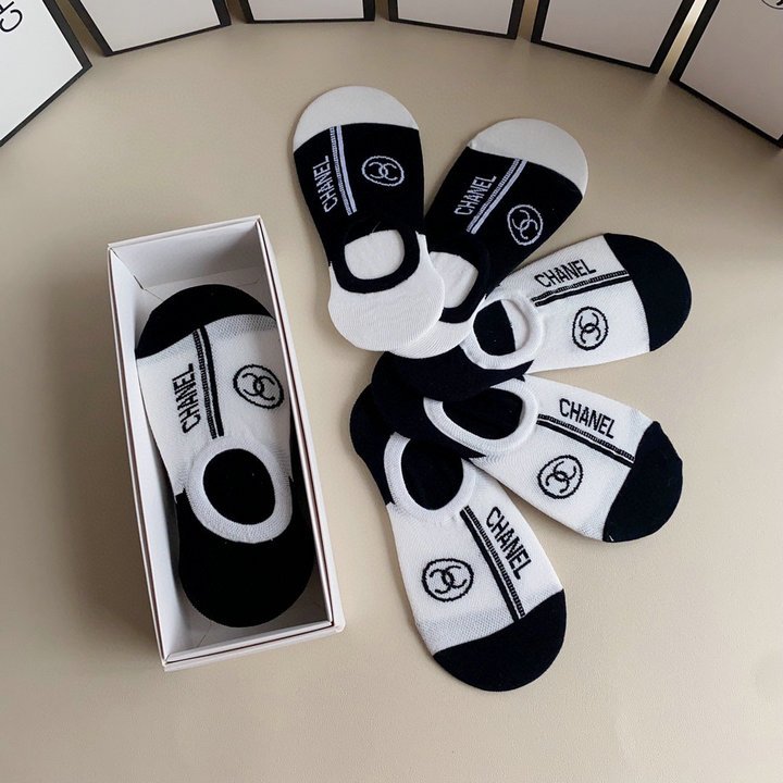 Chanel CC 徽标袜子白色和黑色 -5 双
