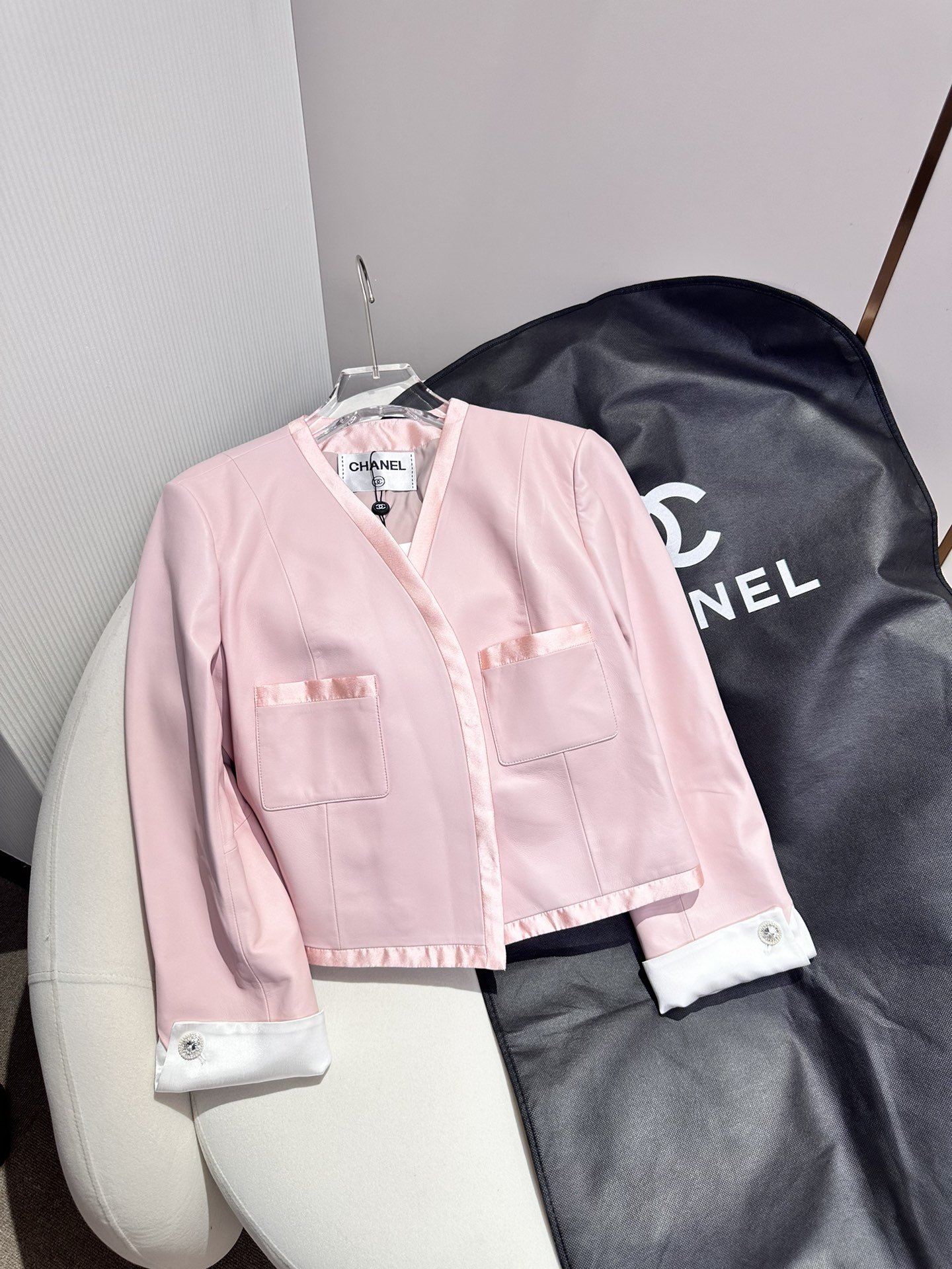 Chanel 女士短款领口夹克 粉色