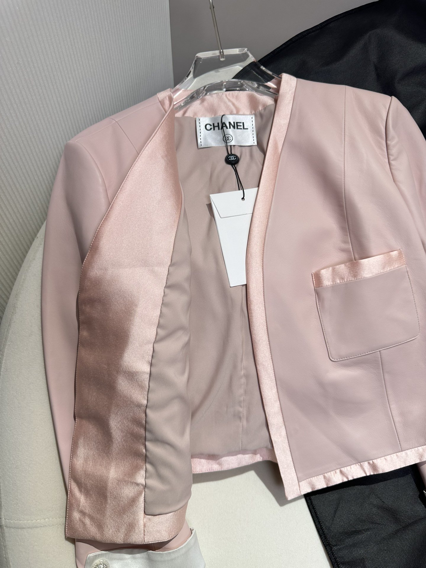 Chanel Cropped Neck Jacket Pink