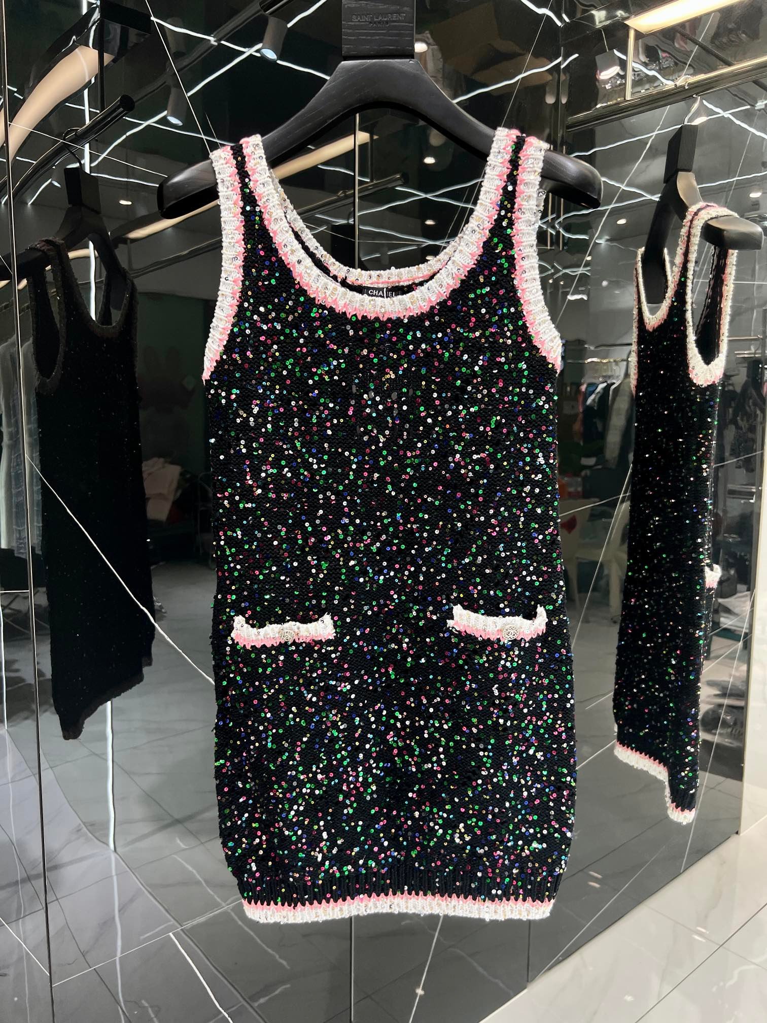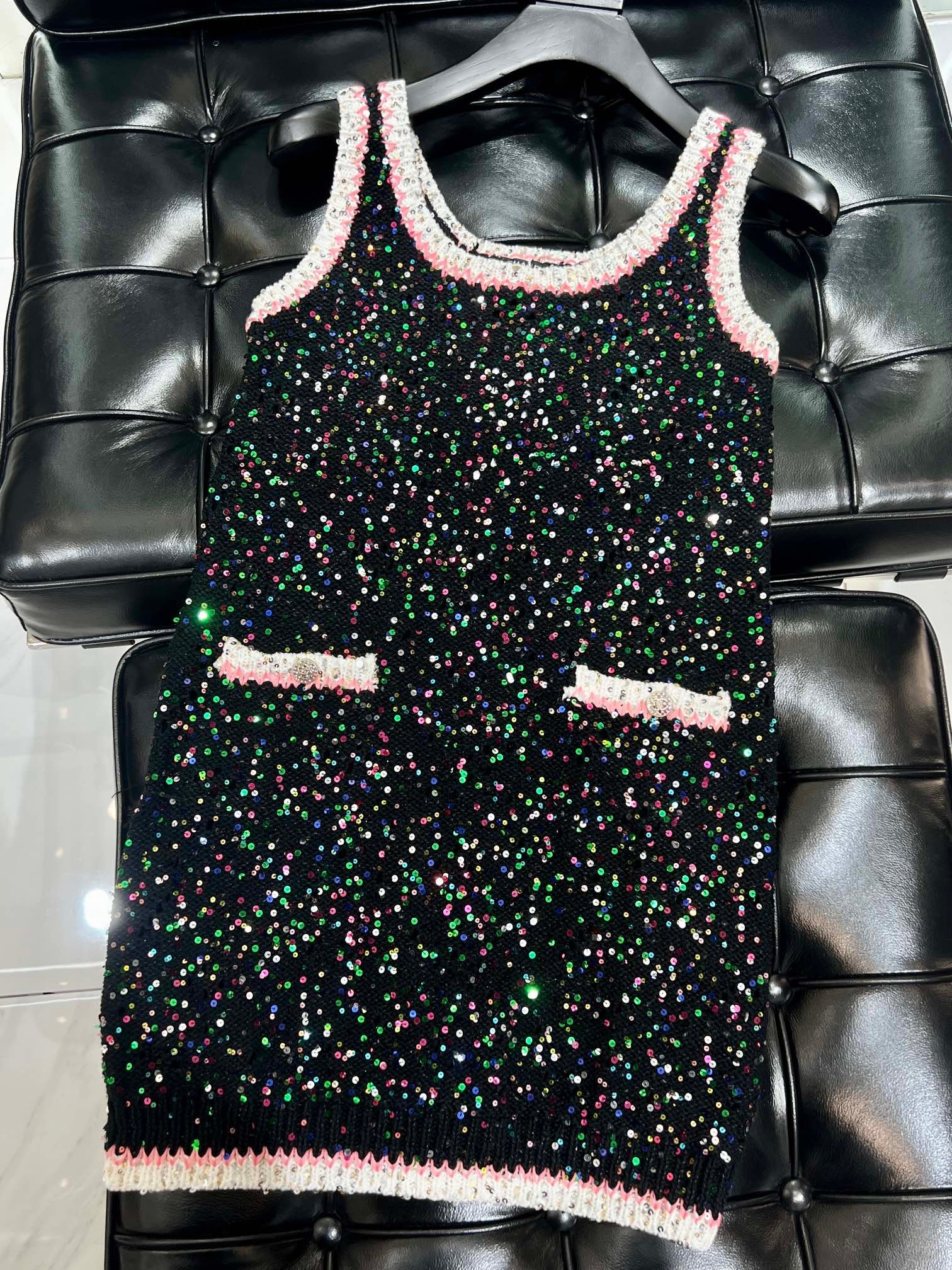 Chanel Socquin 2 String Wool Dress Black