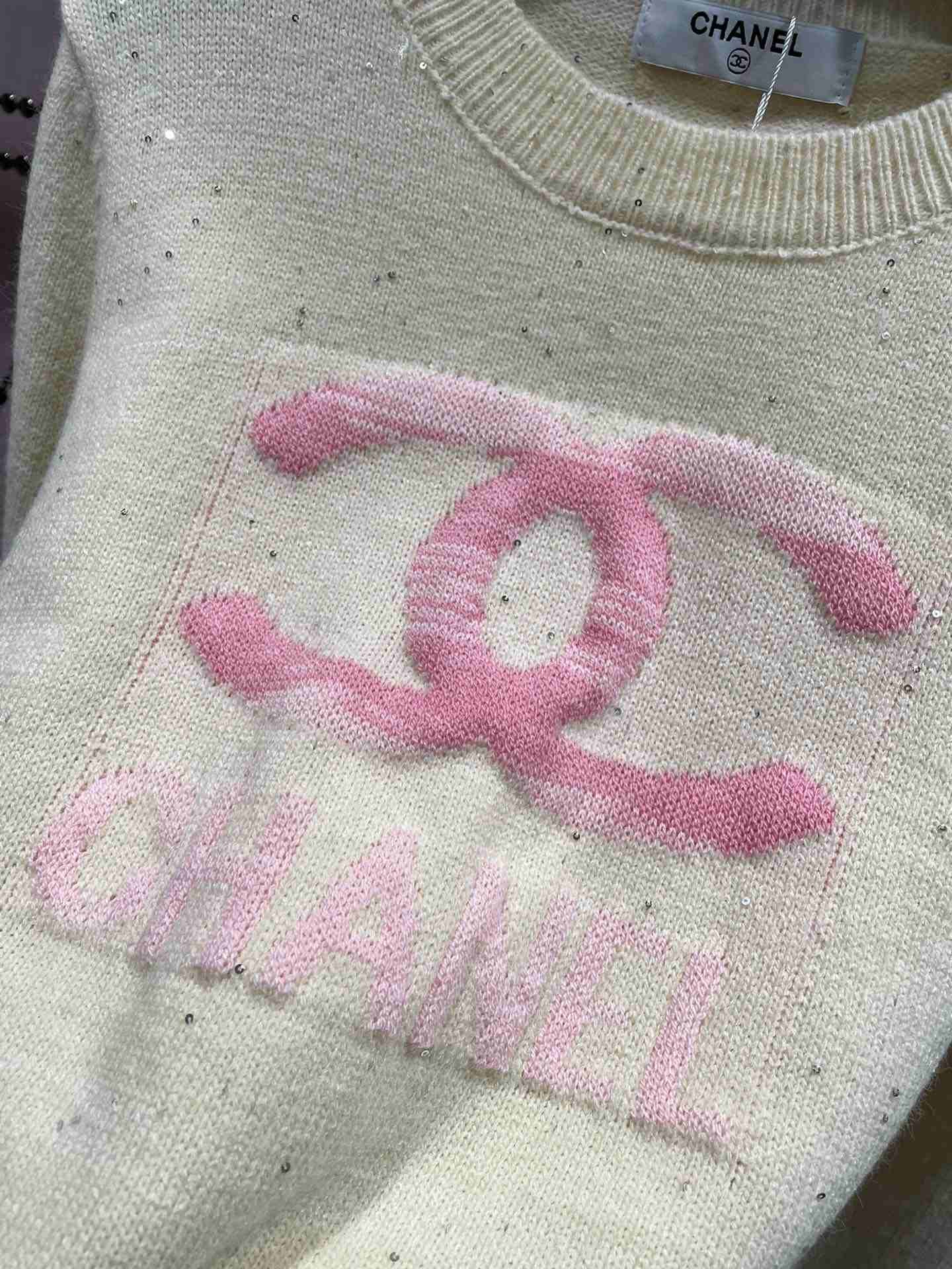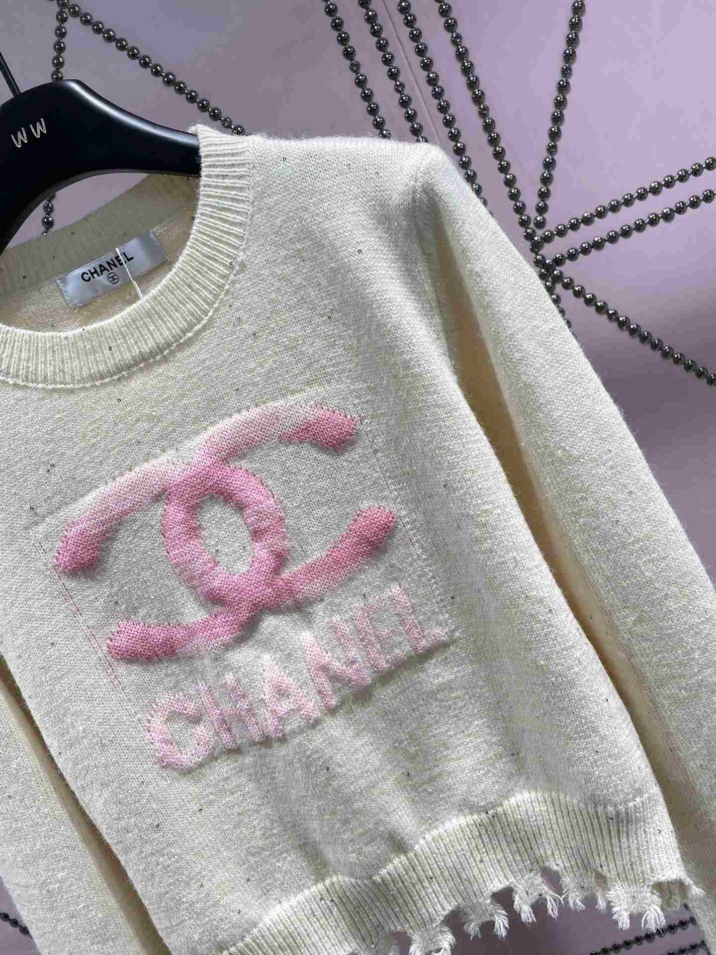 Chanel 女士正面带 CC 标志毛衣白色