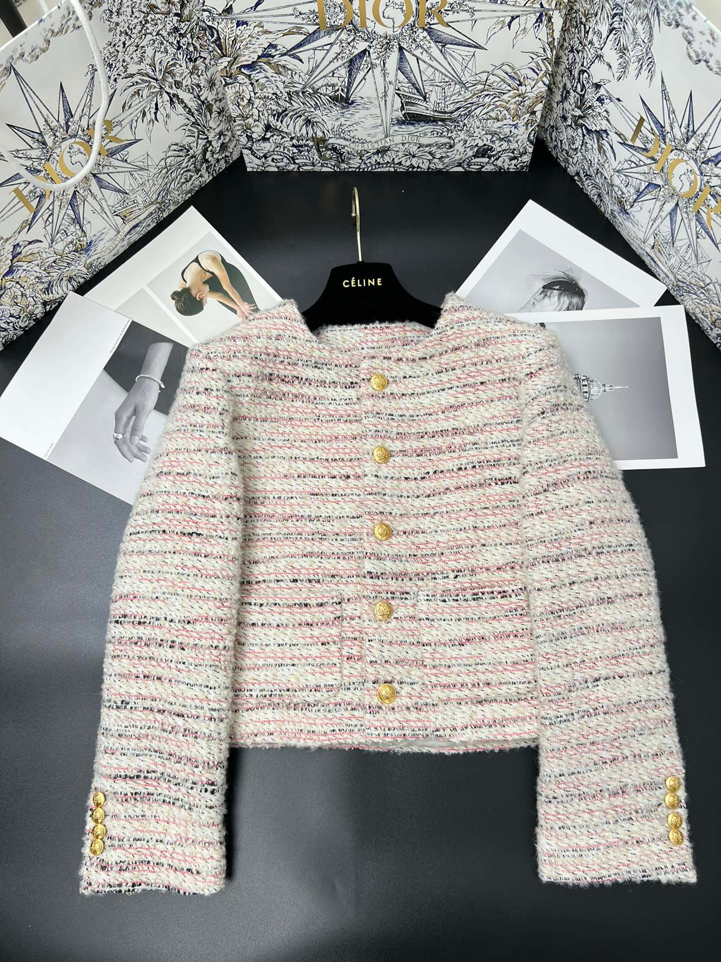 袖口有 4 个 celine ‘blason’ 纽扣