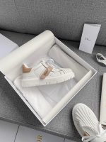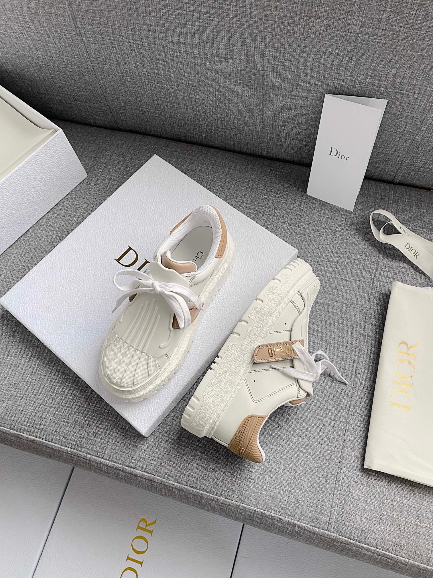 Dior 为其运动鞋系列添加了全新鞋履款式。 Dior-ID 由 Maria Grazia Chiuri 设计,采用双色调设计。为了营造干净、时尚的美感,该鞋款采用白色鞋面,并饰有彩色嵌片。表带上饰有金色时尚品牌标志,尽显奢华气质。脚趾上的五条线条使鞋子更加圆润,为鞋子的整体设计增添了质感。您可以搭配一双可爱的白色渔网袜来提升您的造型。