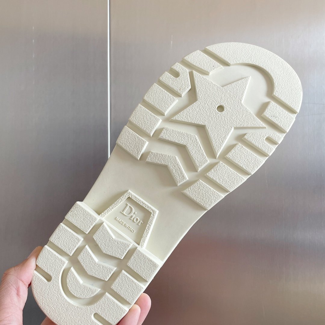 本季新款 Diorquake 靴子采用现代廓形,灵感源自同名木底鞋。鞋面饰有银色铆钉,鞋底背面饰有“Christian Dior PARIS”标志。与该系列的精神相呼应。