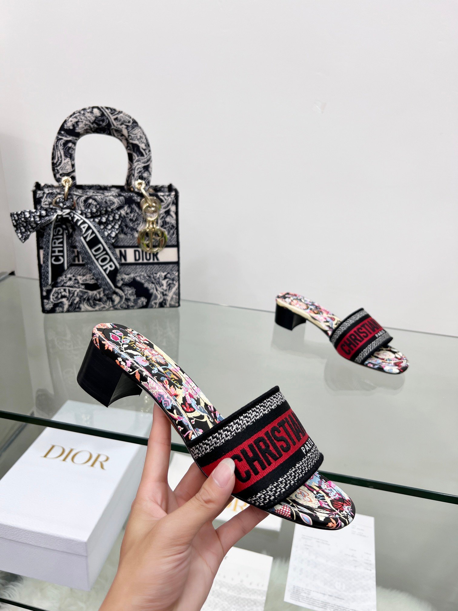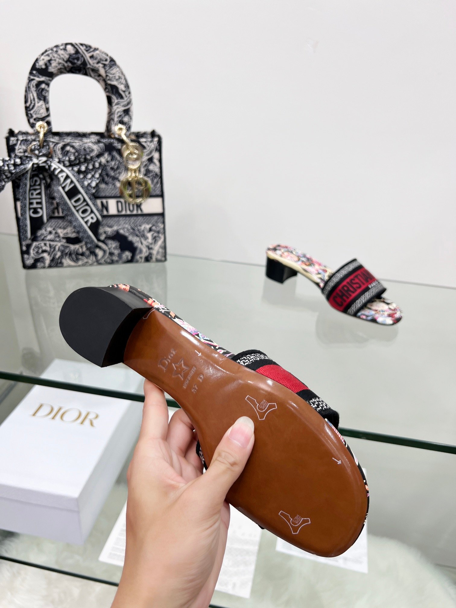 鞋面绣有“CHRISTIAN DIOR”标志