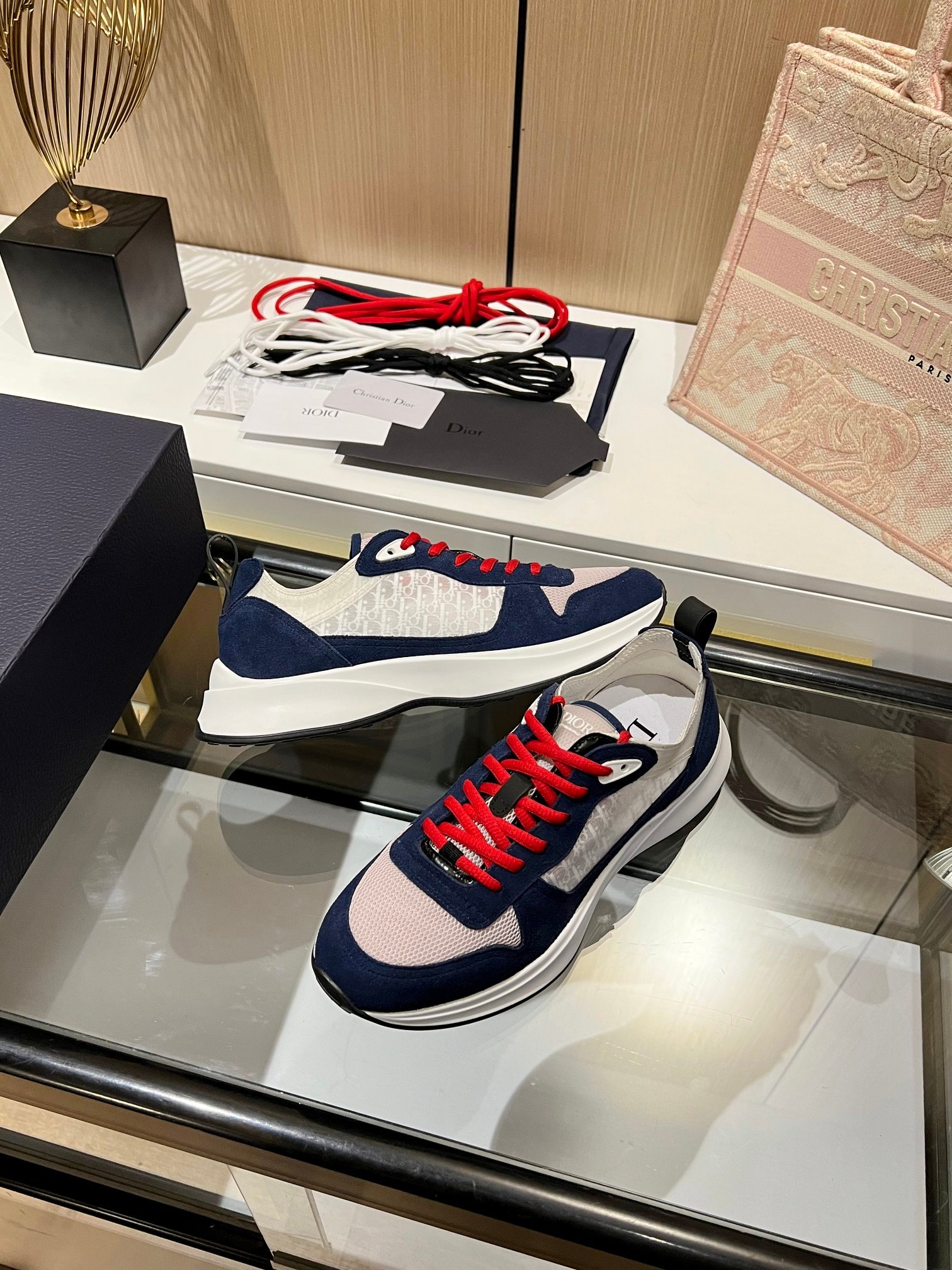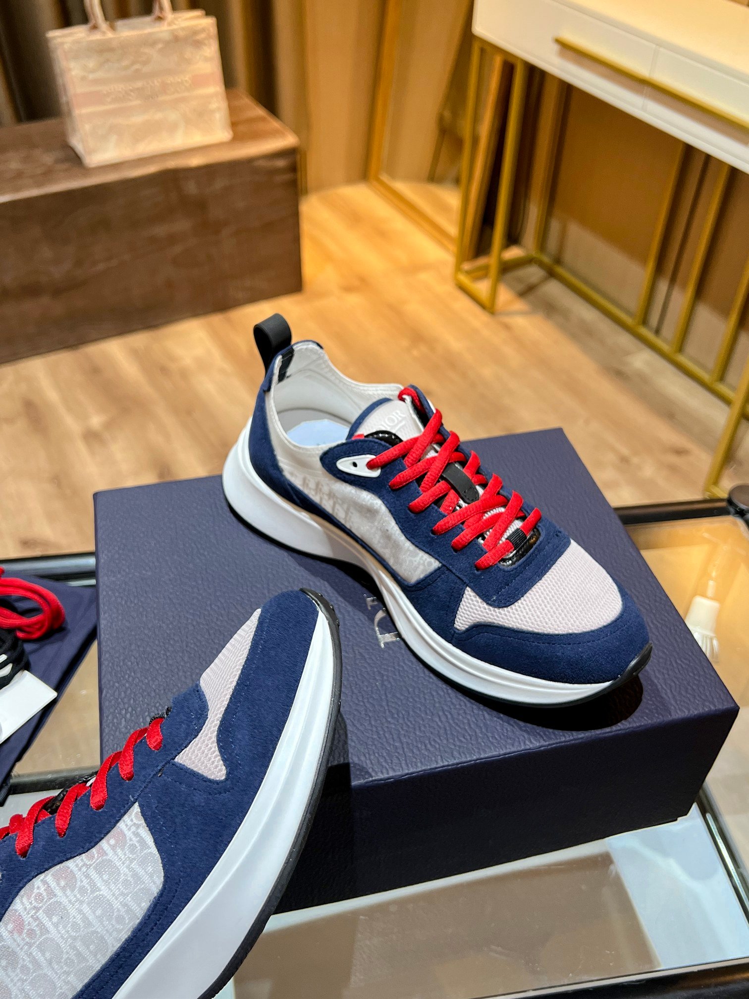 光滑而高科技的网布,鞋舌和鞋跟上带有 Dior Oblique