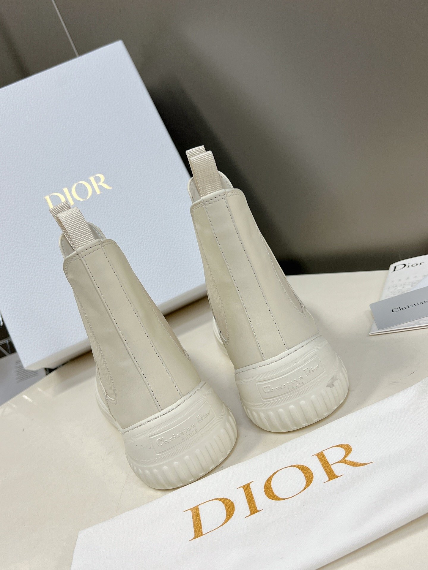 D-Racer 踝靴具有永恒的外观和现代 Dior 风格。切尔西设计采用白色鞋面,配有弹力带,并通过金色“CHRISTIAN DIOR PARIS”标志进一步增强。这款踝靴采用标志性厚 EVA 鞋底,将为本季休闲服装增添点睛之笔。