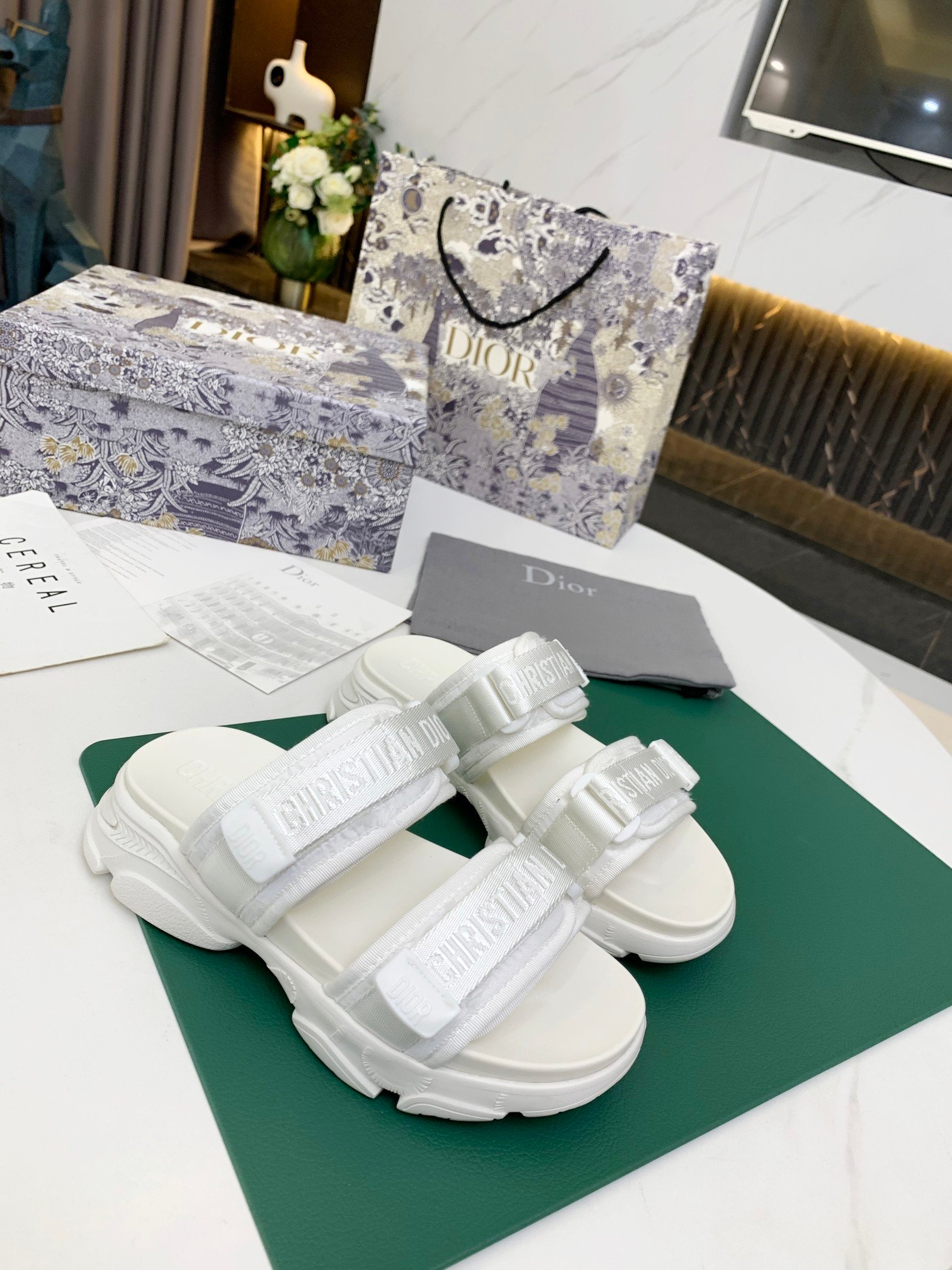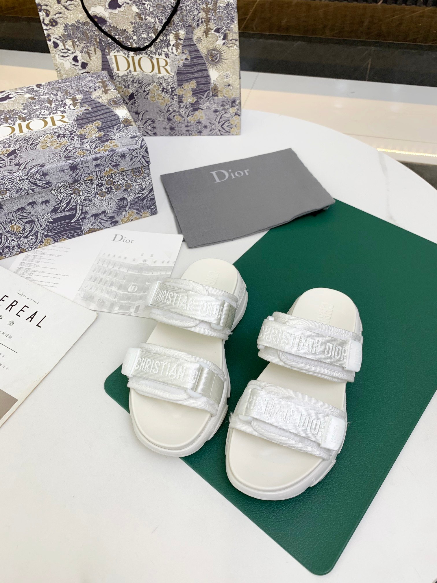 D-Wander 拖鞋是运动鞋和凉鞋的混合设计。轻盈舒适的鞋底配有防刮带,运动线条营造出轻松的感觉。鞋面的迷彩图案和每根带子上的“Christian Dior”签名使外观更加完美。