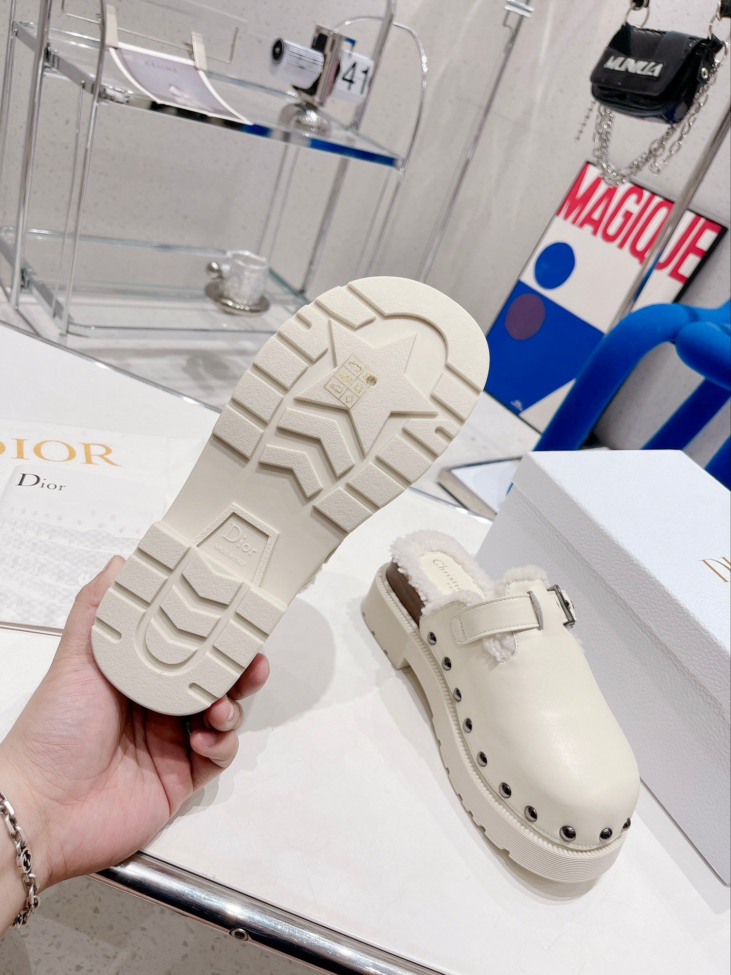 鞋底背面有“Christian Dior PARIS”标志