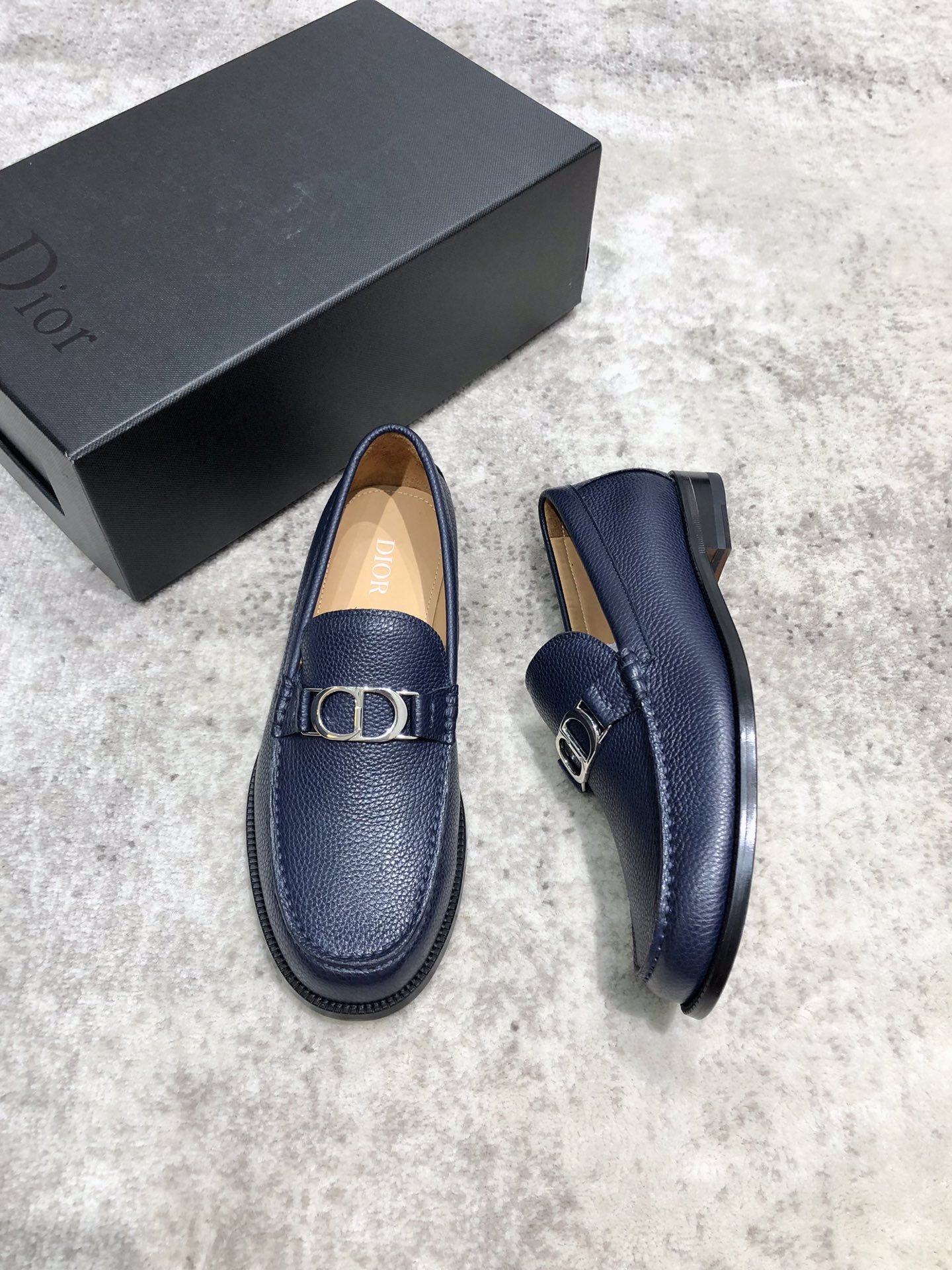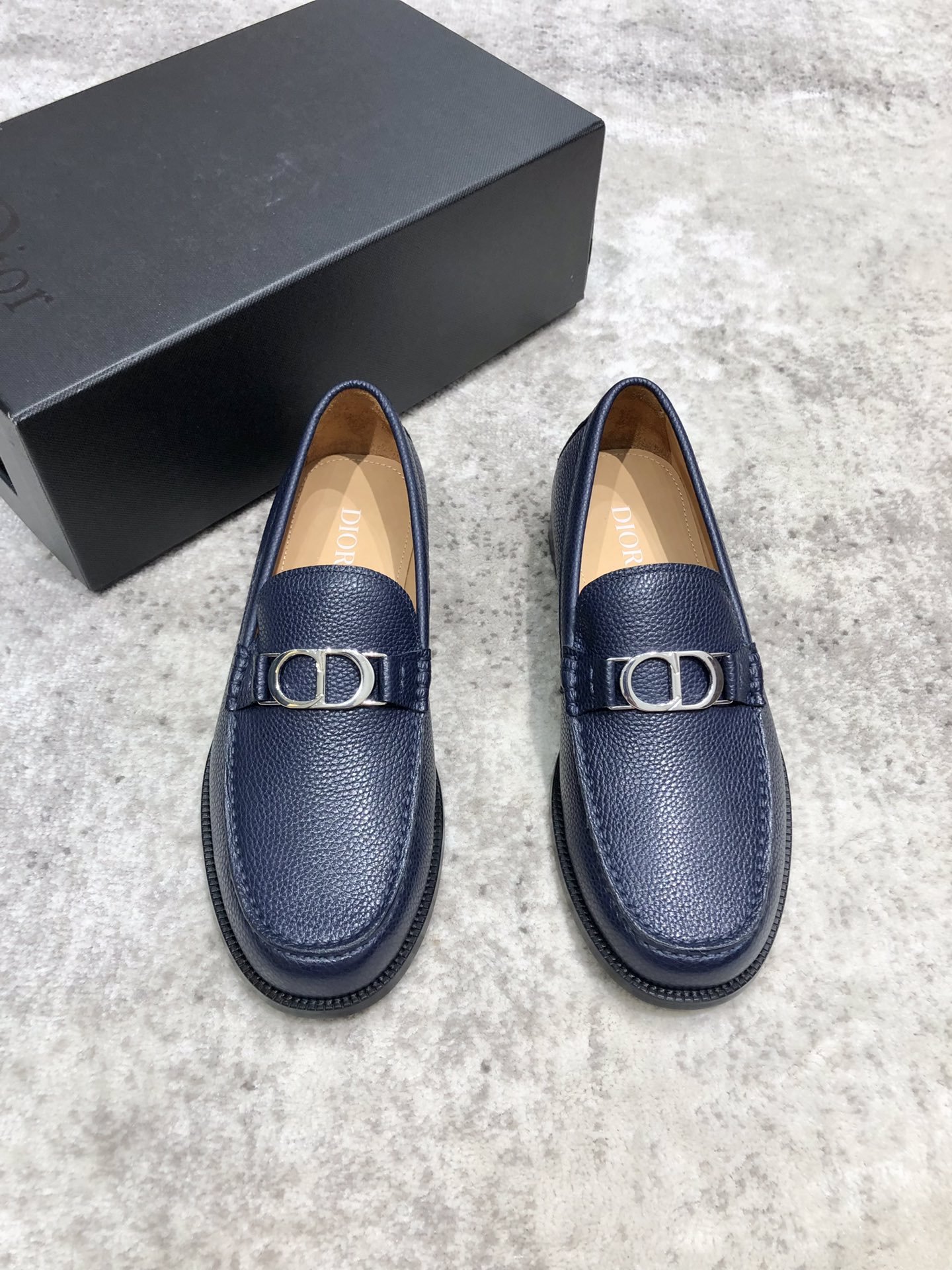 这款乐福鞋是经典正装鞋的优雅变体。该款式采用深蓝色粒面精制而成,正面饰有镀钯饰面黄铜“CD Icon”带扣带。该鞋柔软耐用,橡胶鞋底带来舒适感。可搭配百慕大短裤或牛仔裤,打造别致休闲的廓形。