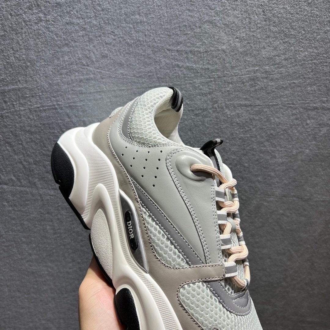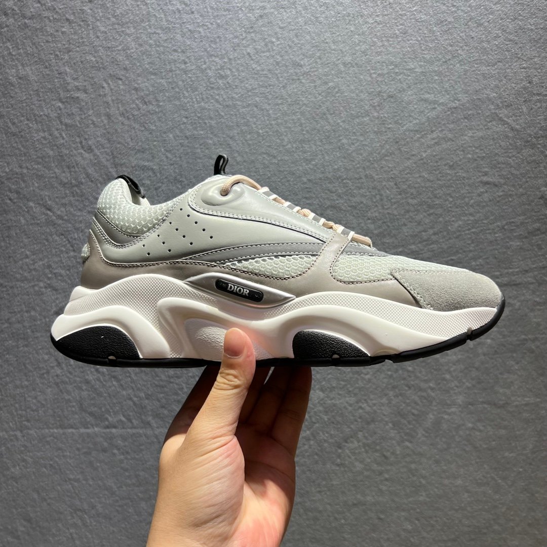 B22 运动鞋通过复古镜头重塑了厚实的运动鞋。它结合了不同的材料和纹理,包括光滑和白色的技术网布,具有大胆的运动风格美感。圆形鞋带和侧面凸起的“DIOR”标志与厚实的白色雕刻橡胶鞋底相得益彰。该运动鞋可搭配任何休闲服装,打造运动感和现代感的廓形。