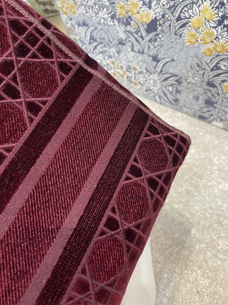 - M0565 迪奥Dior 中号 Lady D-Lite 手袋 天鹅绒刺绣藤格纹 酒红色