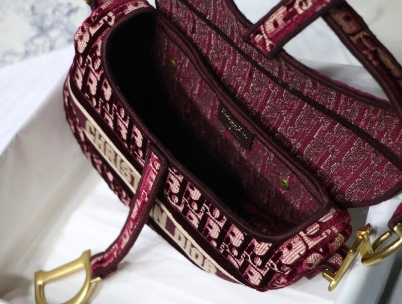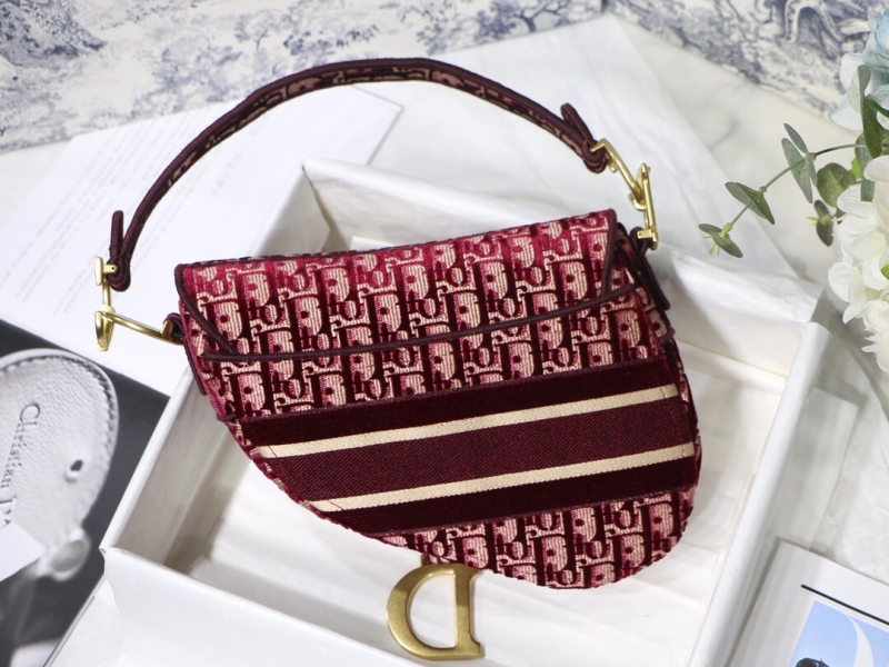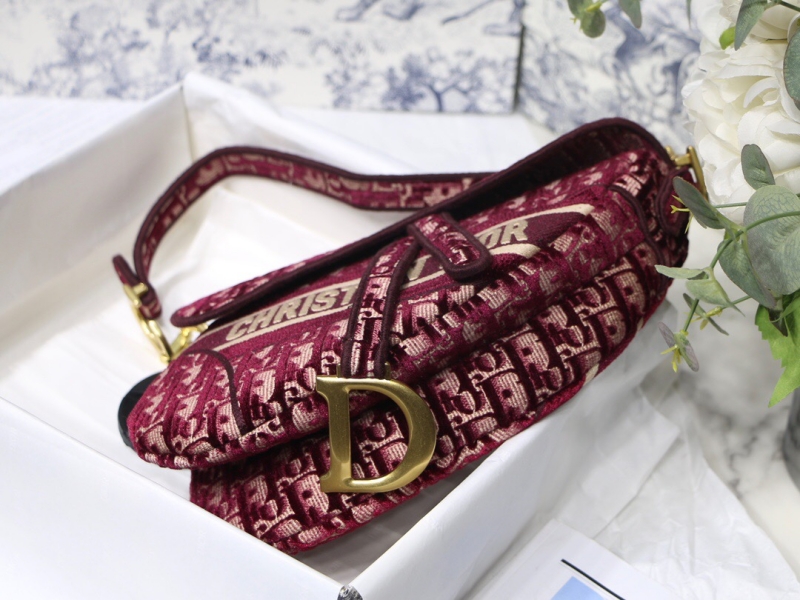 - M0446 Dior Saddle马鞍包 Dior Oblique 绣花丝绒 酒红色