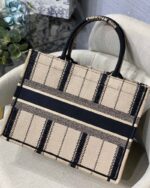• M1296 Dior Book Tote 小号手袋 黑米色Bayadere 刺绣