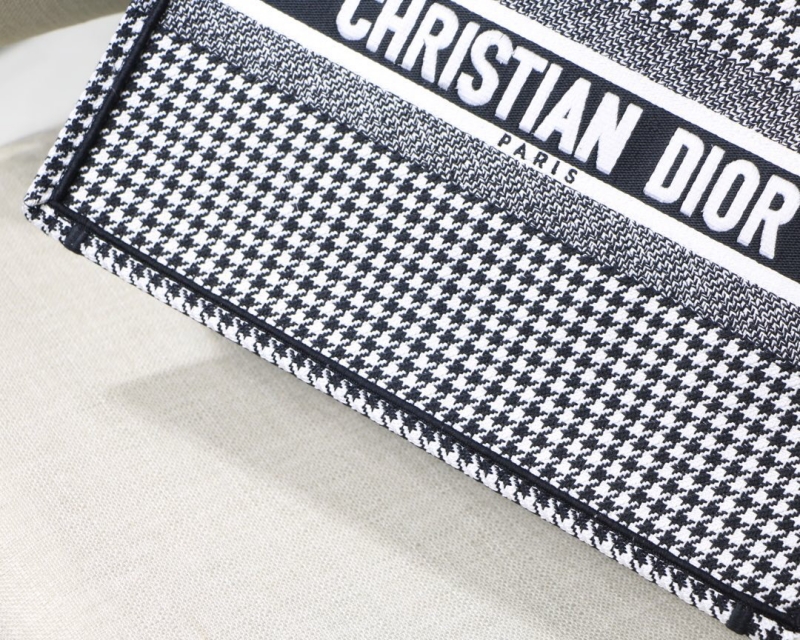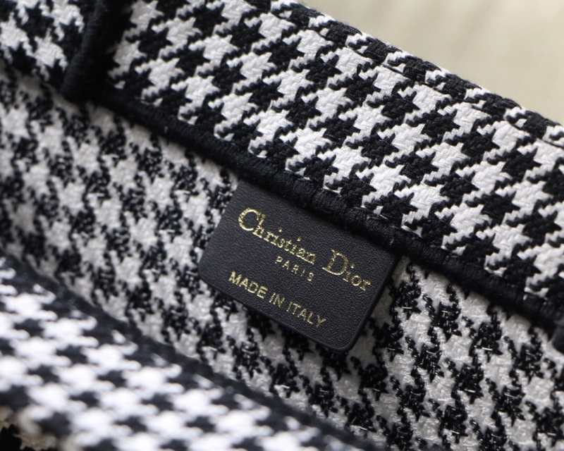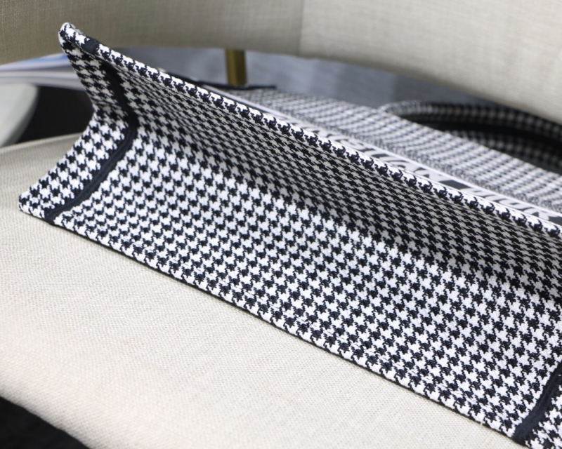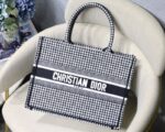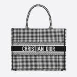 • M1296 Dior Book Tote 小号手袋 黑白千鸟格刺绣