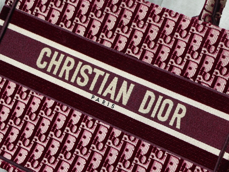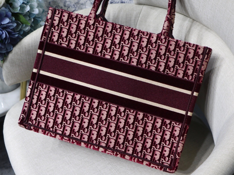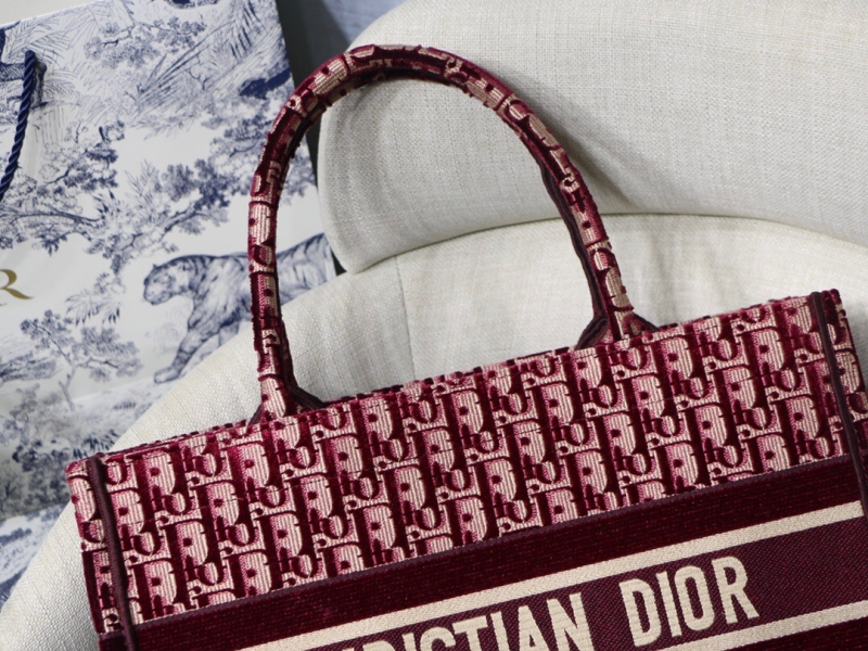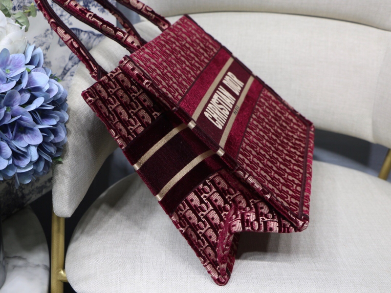 - M1296 Dior Book Tote 小号手袋 酒红色天鹅绒 Oblique 印花