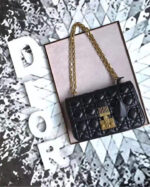 - M5818 Dior Addict女包 小羊皮 藤格纹 翻盖式 迪奥手提包 黑色