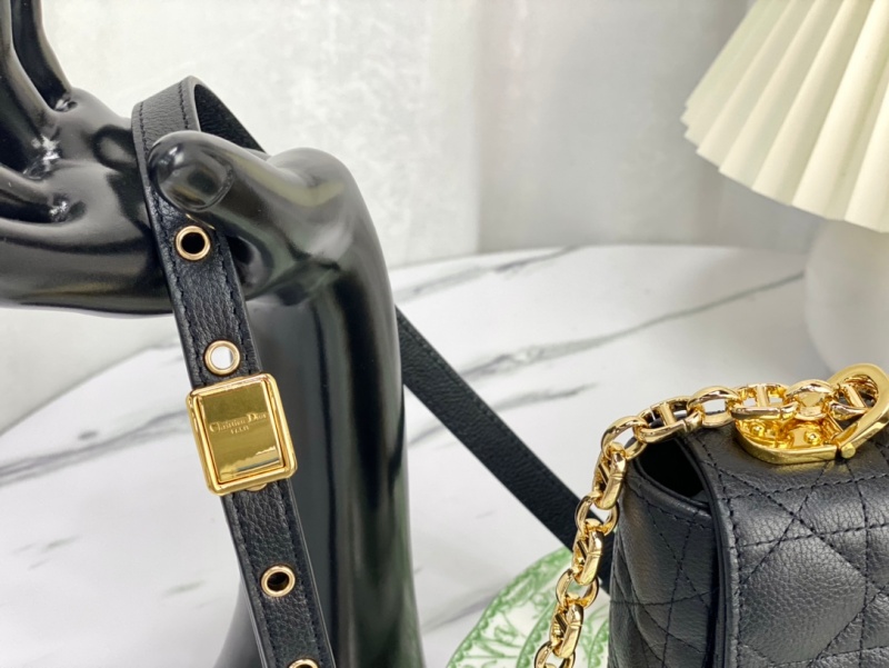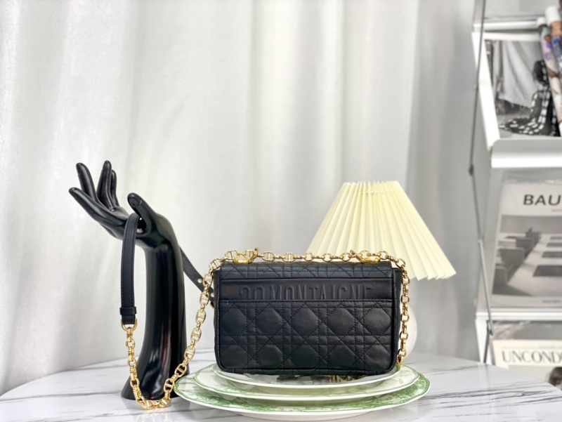 - 结构:翻盖开合搭配旋钮式“CD”扣环 背面“30 MONTAIGNE”压花标志 可拆卸、可调节的“CD”链环肩带,搭配军装风格的“Christian Dior”搭扣 2 个链环搭配 X 形中间凹口设计,便于打开拆卸链条 内部拉链口袋和贴袋 后侧口袋 可随心搭配其他刺绣肩带 内含防尘袋