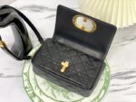 - 详细介绍:这款 Dior Caro 手袋结合典雅气质与现代风范。采用黑色柔软牛皮革精心制作,饰以藤格纹缉面线。翻盖饰以复古金色饰面金属旋钮式“CD”扣环,灵感源自 Christian Dior 香水瓶的封口。小号款式,搭配可拆卸的“CD”标志链条肩带,可手提、肩背或斜挎,可替换成刺绣宽肩带,点缀日常造型或为晚装亮丽点睛。