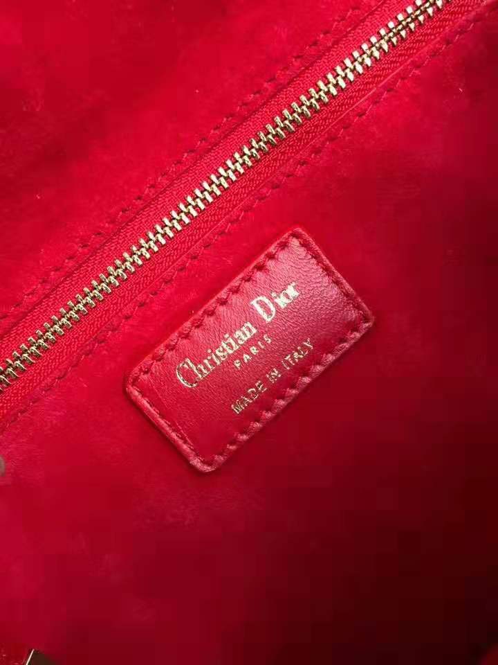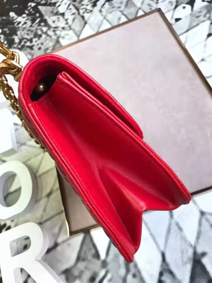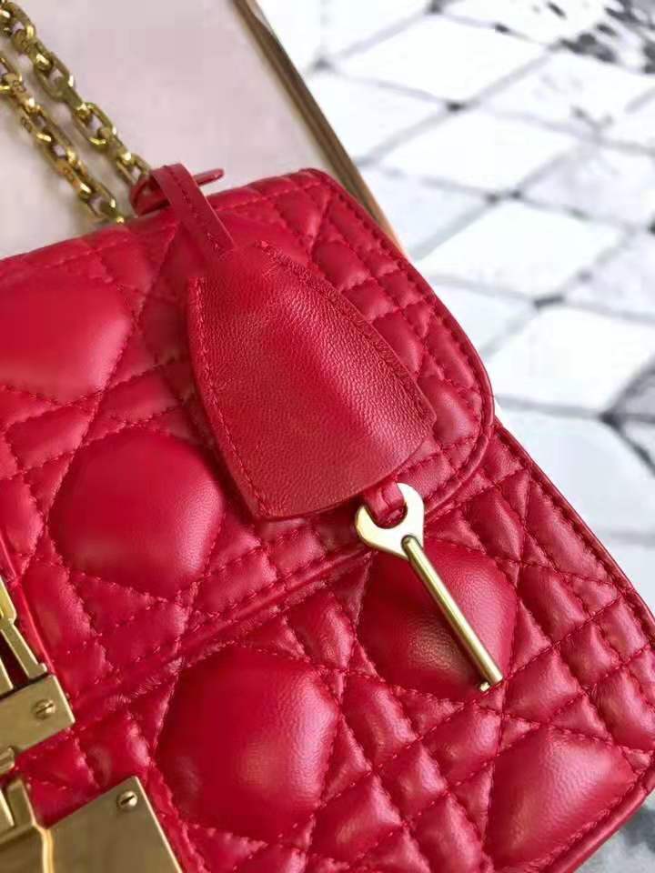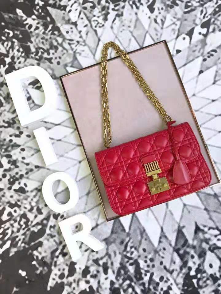 - M5818 Dior Addict女包 小羊皮 藤格纹 翻盖式 迪奥手提包 大红色