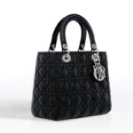 • CAL44551 迪奥 Dior Lady Dior 黑色小羊皮手提包经典藤格纹 银色配饰