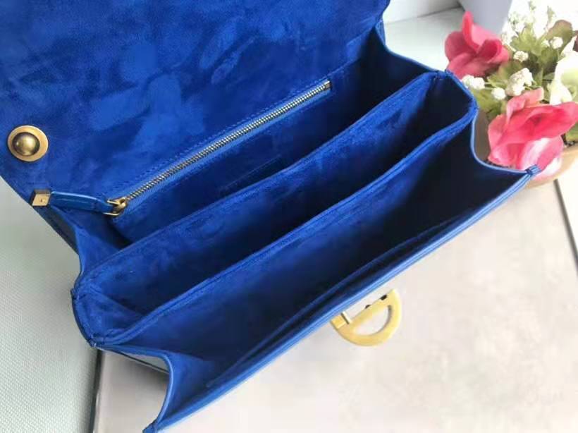 - M6702 Dior女包 21ST 小羊皮手包 金属链条 迪奥翻盖肩包 蓝色