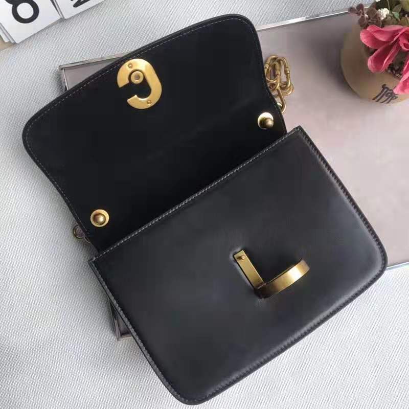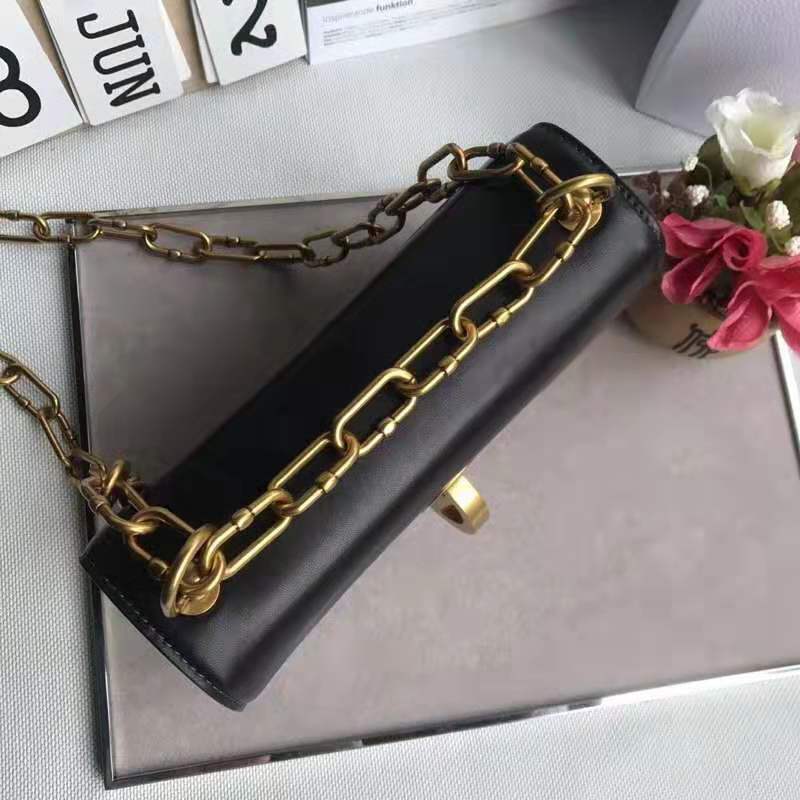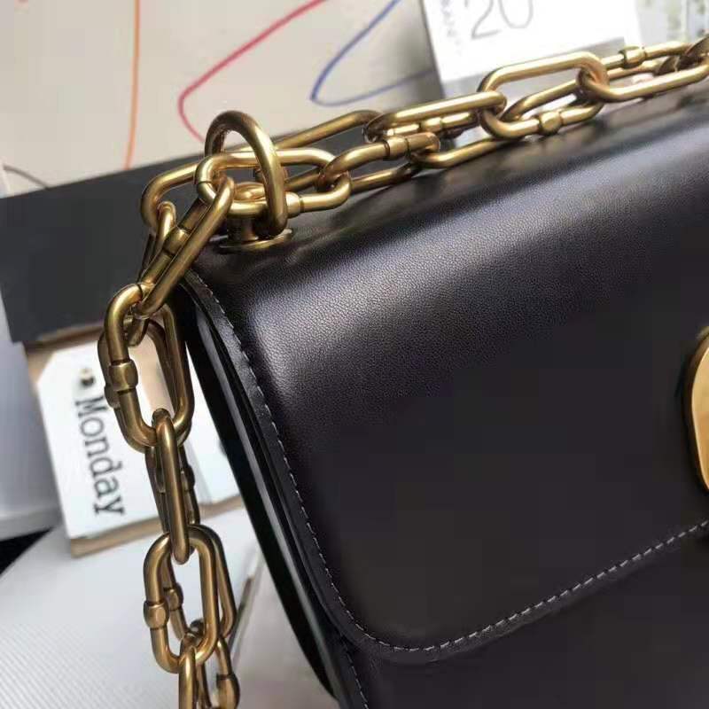 • 结构:标志锁扣,可拆卸链带 ,复古金色金属配饰,可肩背或斜挎