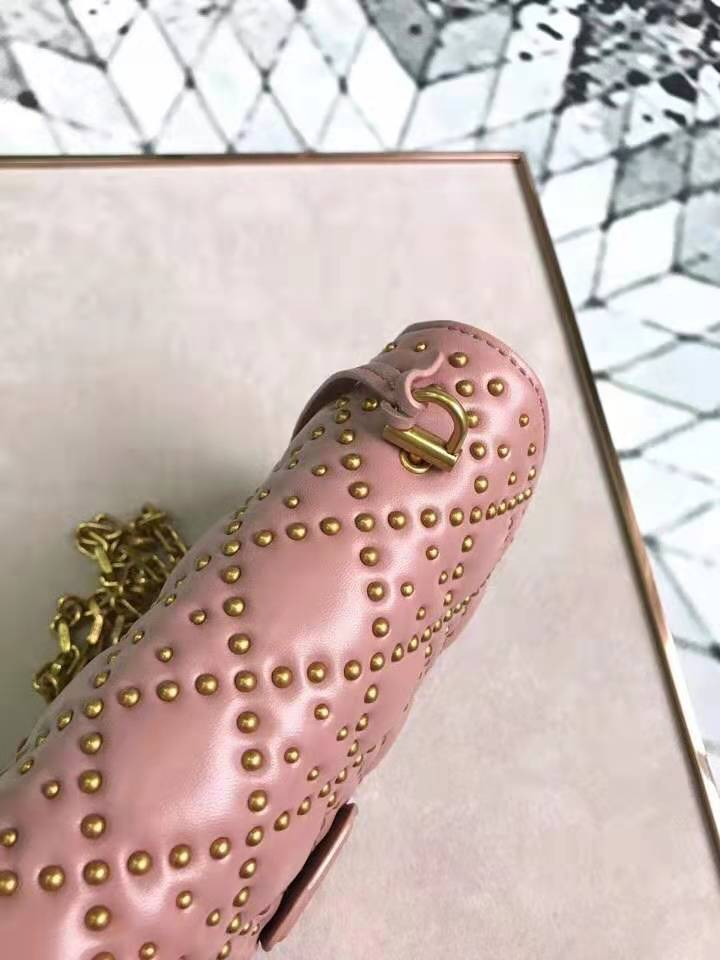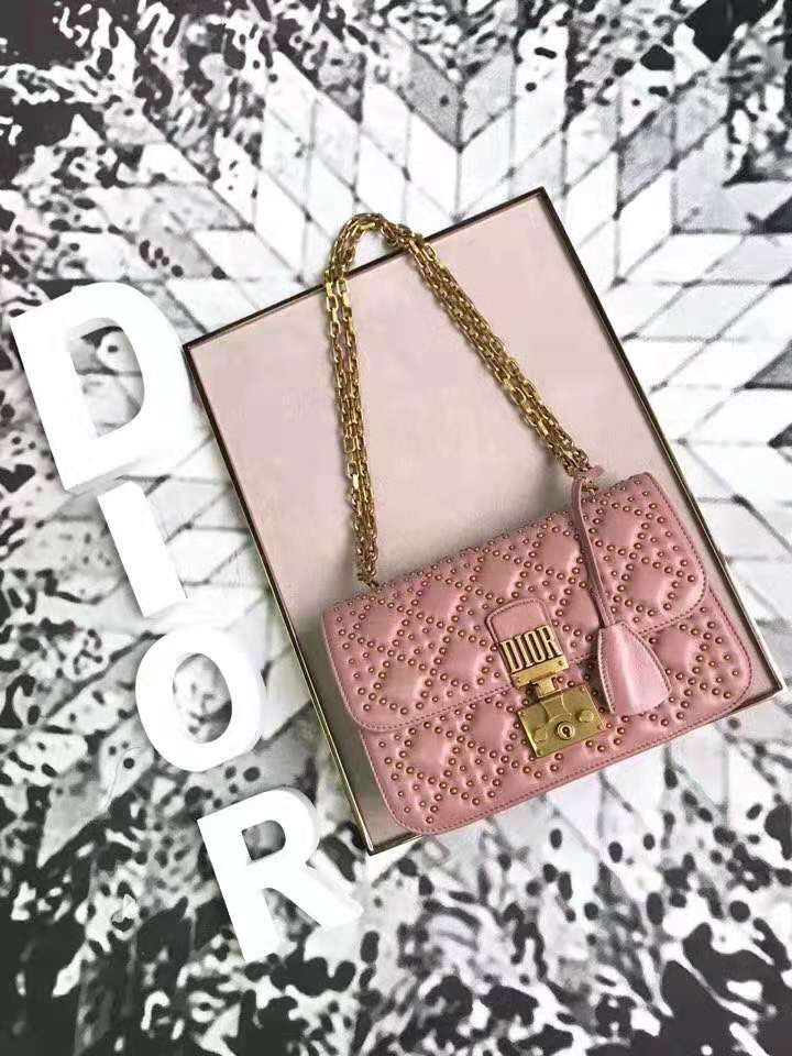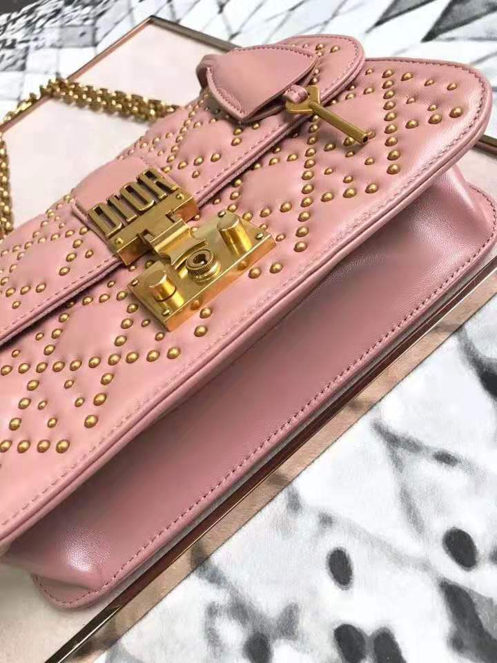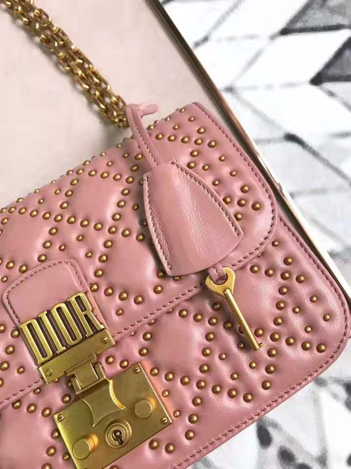 - M5819 Dior Addict柳钉包 藤格纹铆钉 翻盖链条 迪奥小方包 粉色
