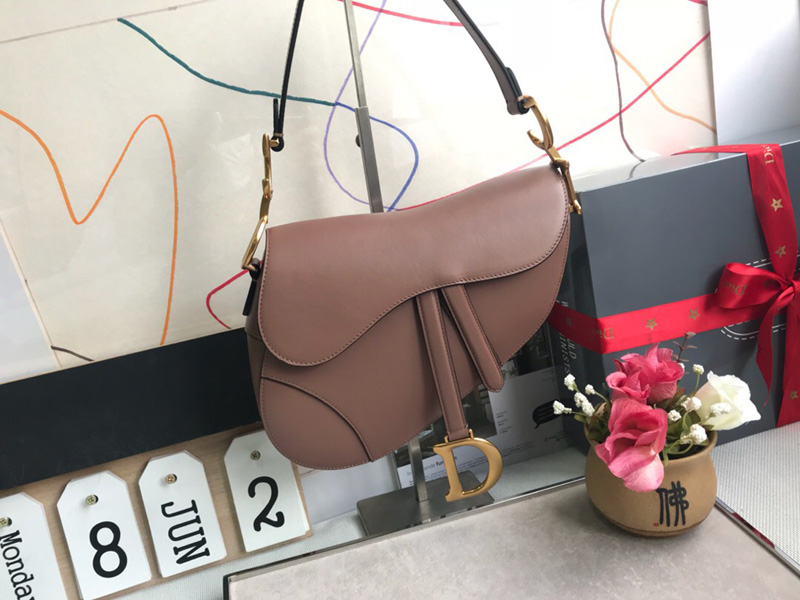 • M0446 Dior Saddle小牛皮手提包 Dior马鞍包 Dior女包 豆沙色