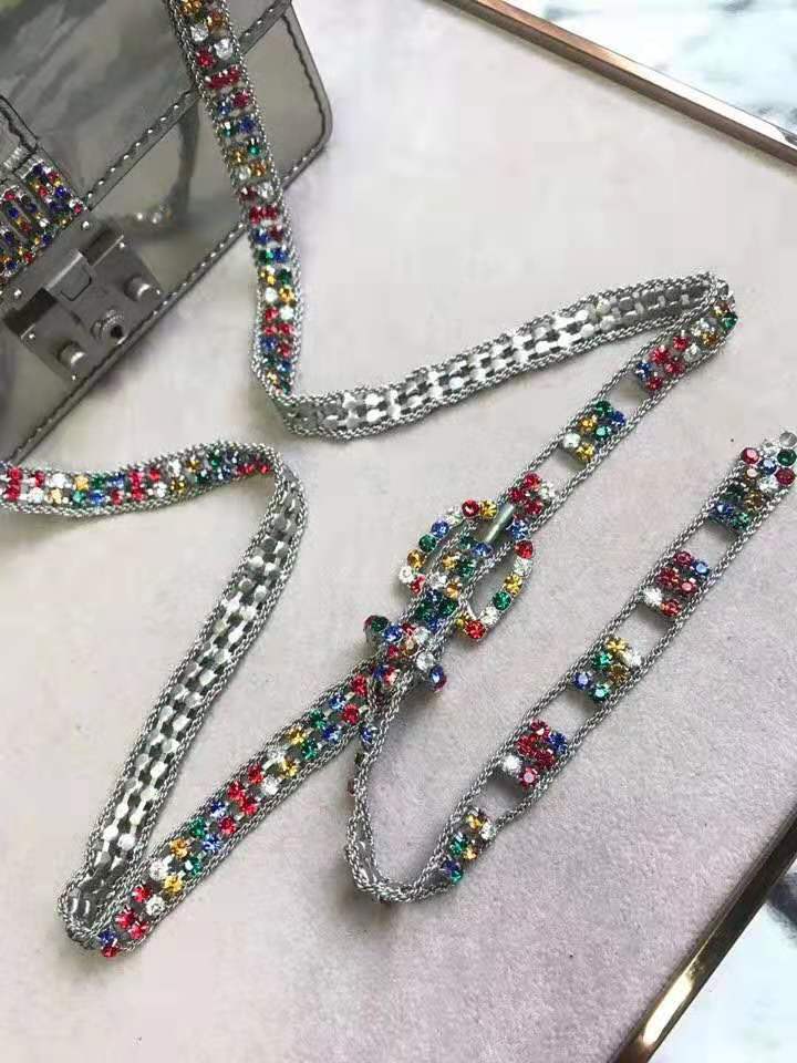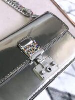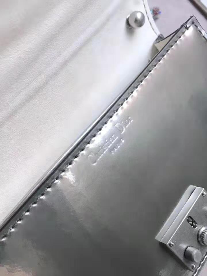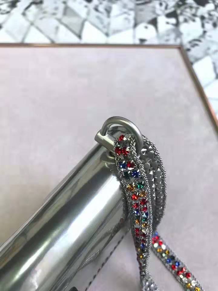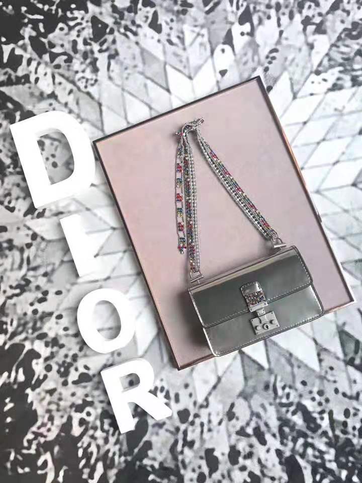 - 5817 Dior女包 复古彩钻金属扣 镜面小牛皮 迪奥手袋 彩钻链条肩包 银灰色