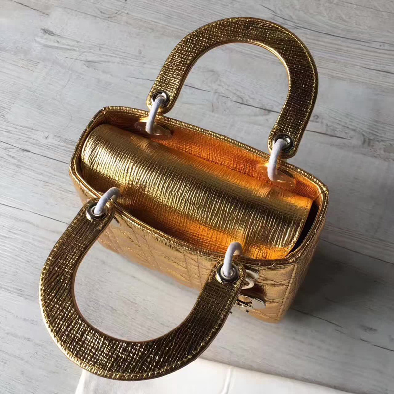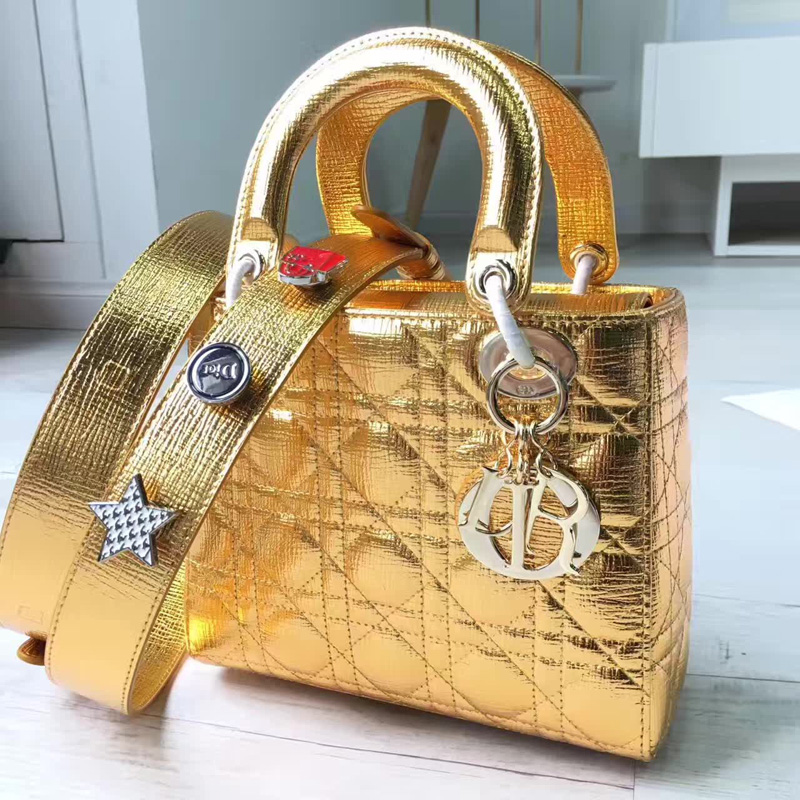 - Dior LADY DIOR小羊皮手提包 2017新款迪奥徽章戴妃包 金色