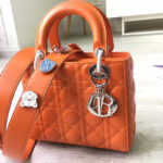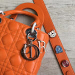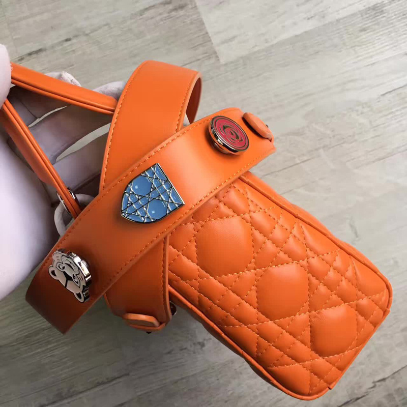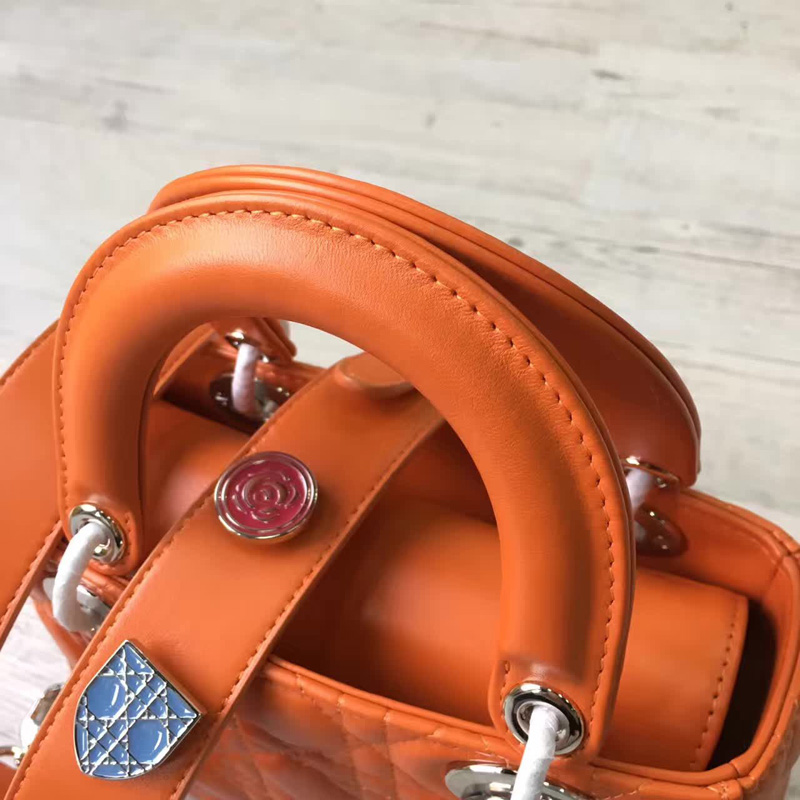 • Dior LADY DIOR小羊皮手提包 2017新款迪奥徽章戴妃包 橙色