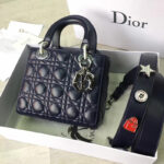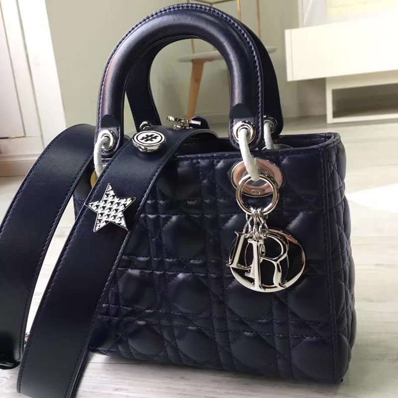 - Dior LADY DIOR小羊皮手提包 2017新款迪奥徽章戴妃包 蓝色