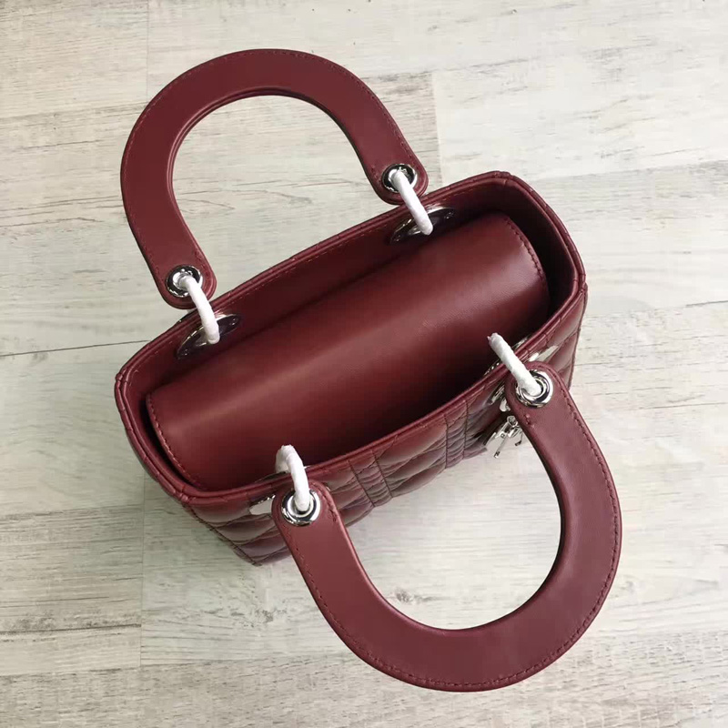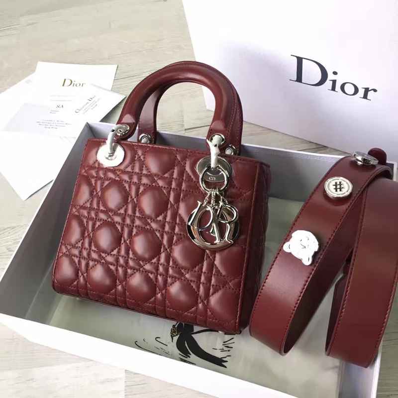 - Dior LADY DIOR小羊皮手提包 2017新款迪奥徽章戴妃包 枣红色