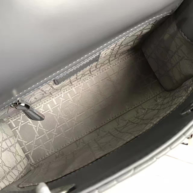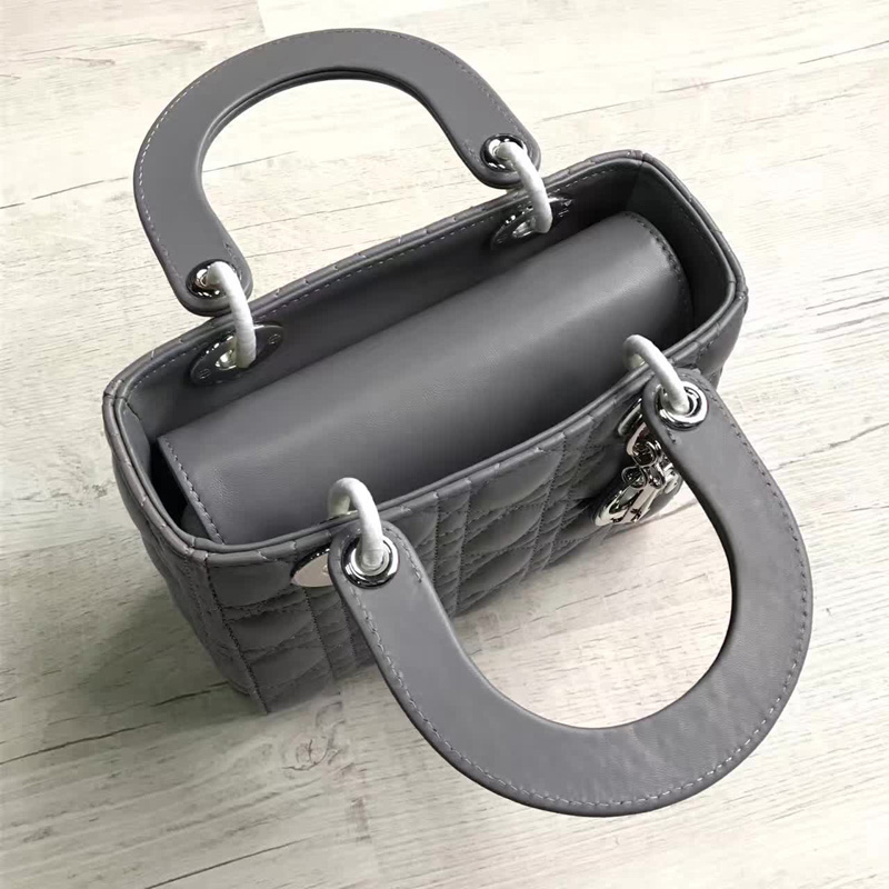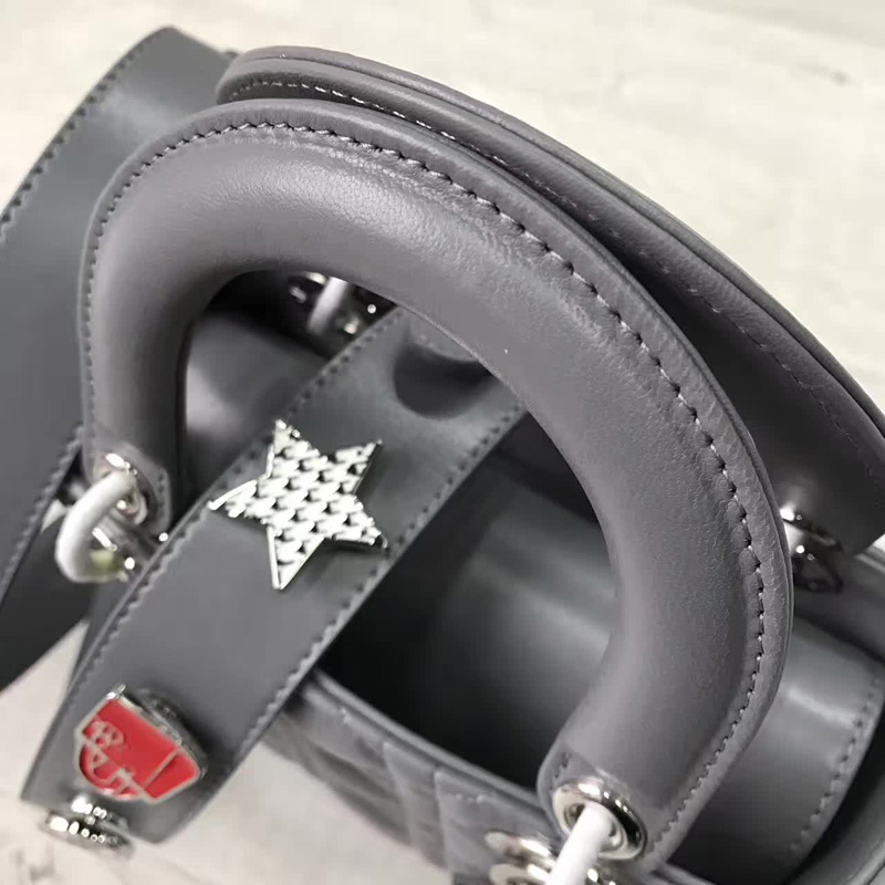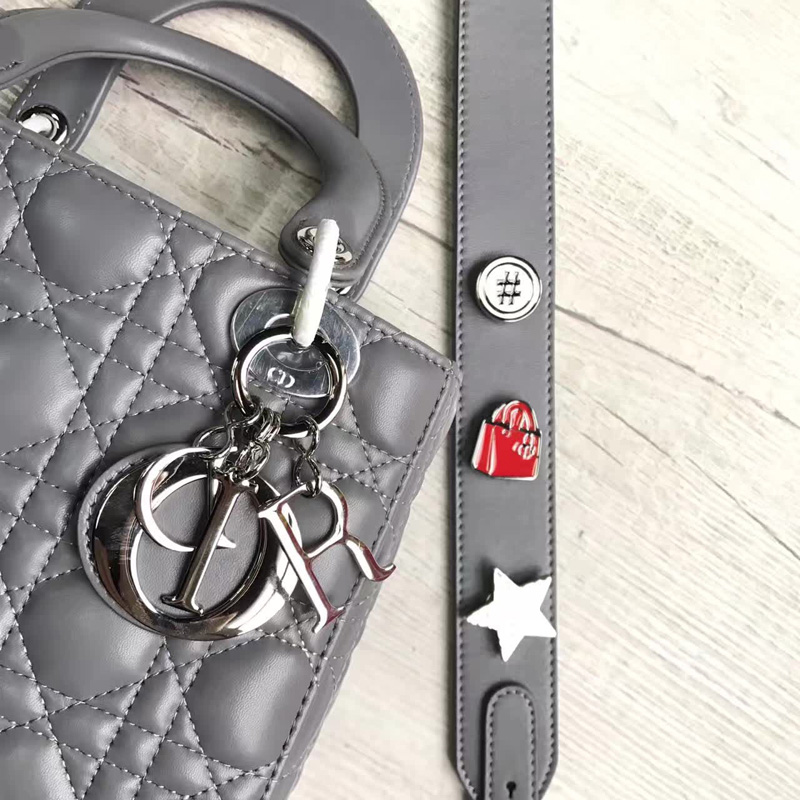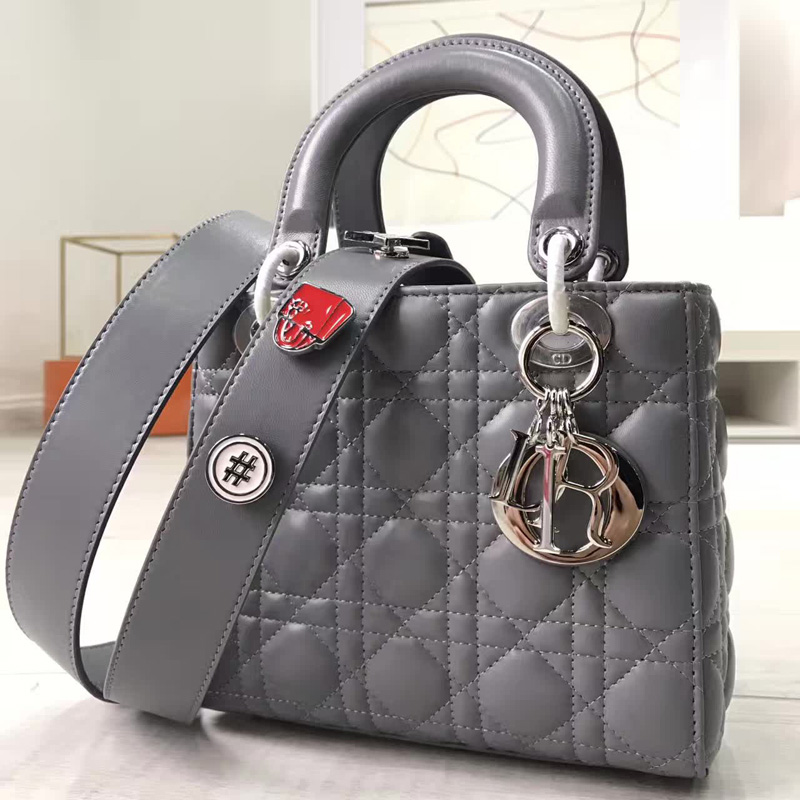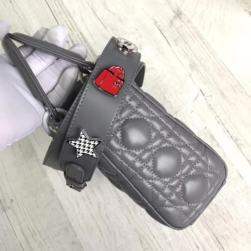 - Dior LADY DIOR小羊皮手提包 2017新款迪奥徽章戴妃包 灰色