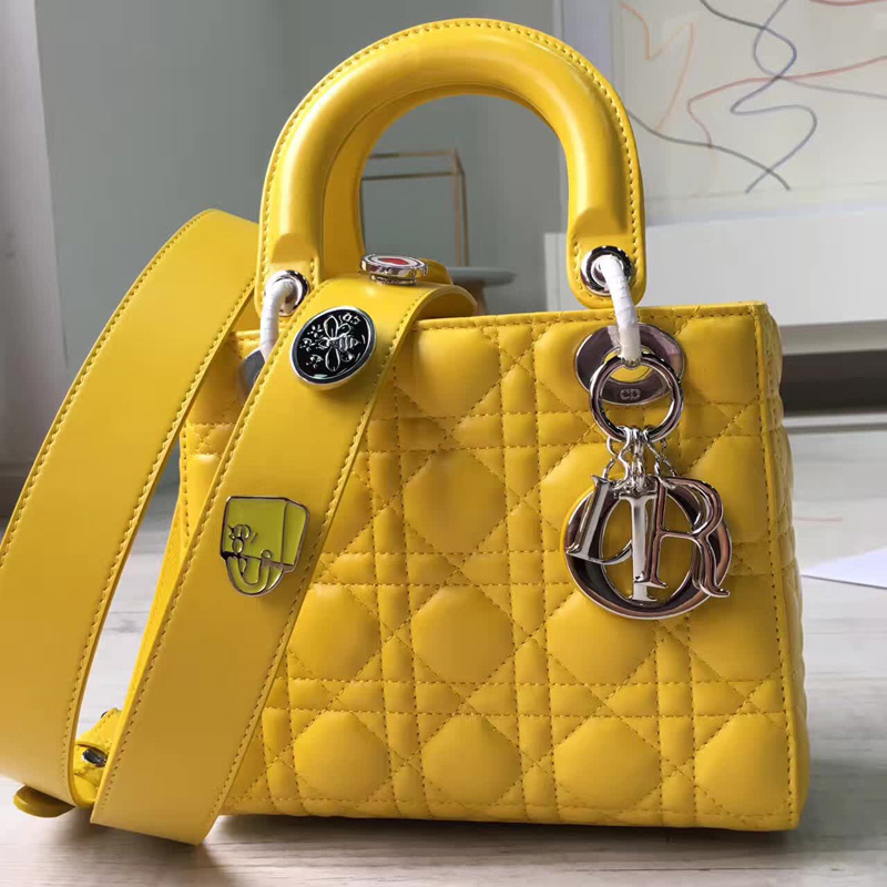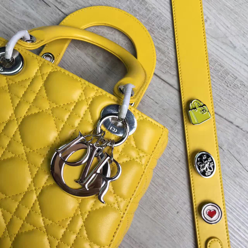 - Dior LADY DIOR小羊皮手提包 2017新款迪奥徽章戴妃包 黄色