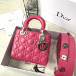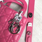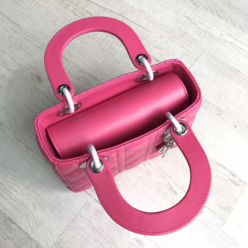 - Dior LADY DIOR小羊皮手提包 2017新款迪奥徽章戴妃包 玫红色