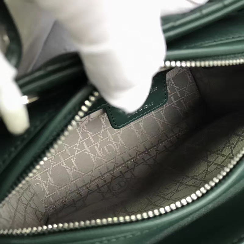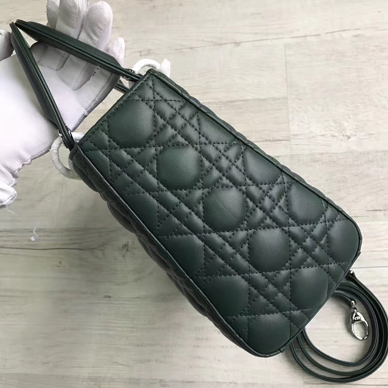 - Dior迪奥 Lady Dior 经典戴妃包 五格 绿墨色羊皮 金 小号