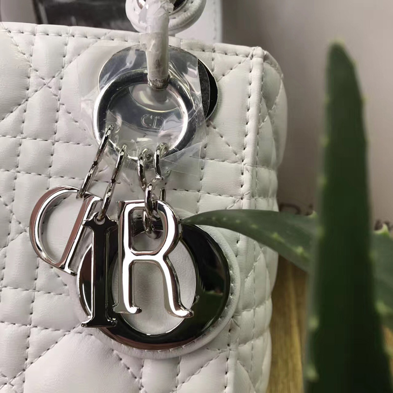 - Dior迪奥 Lady Dior 经典迪奥戴妃包 三格 白色羊皮 Dior链条包 银扣