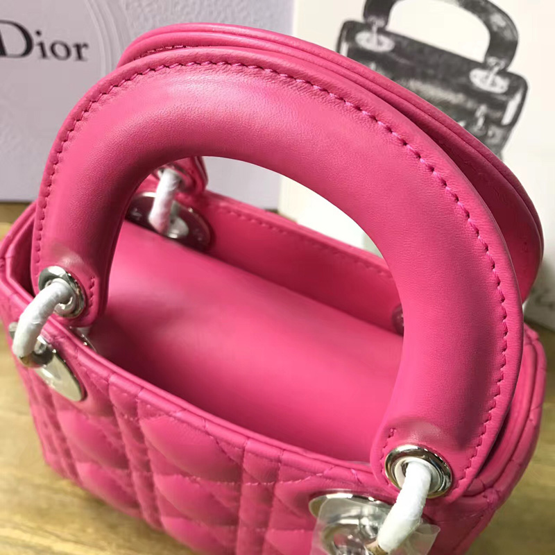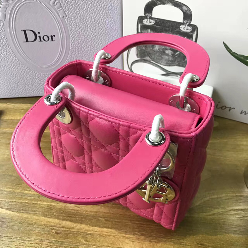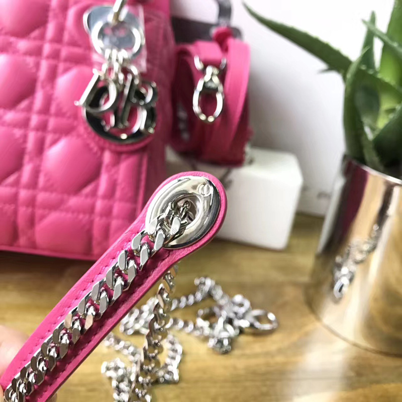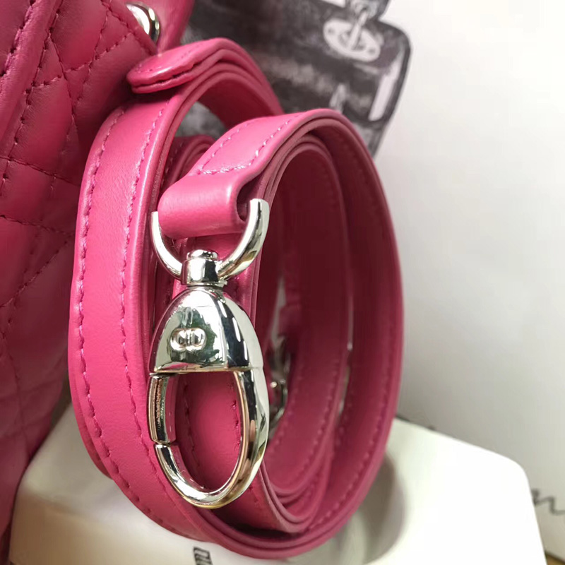 - Dior迪奥 Lady Dior 经典迪奥戴妃包 三格 玫红色羊皮 Dior链条包 银扣
